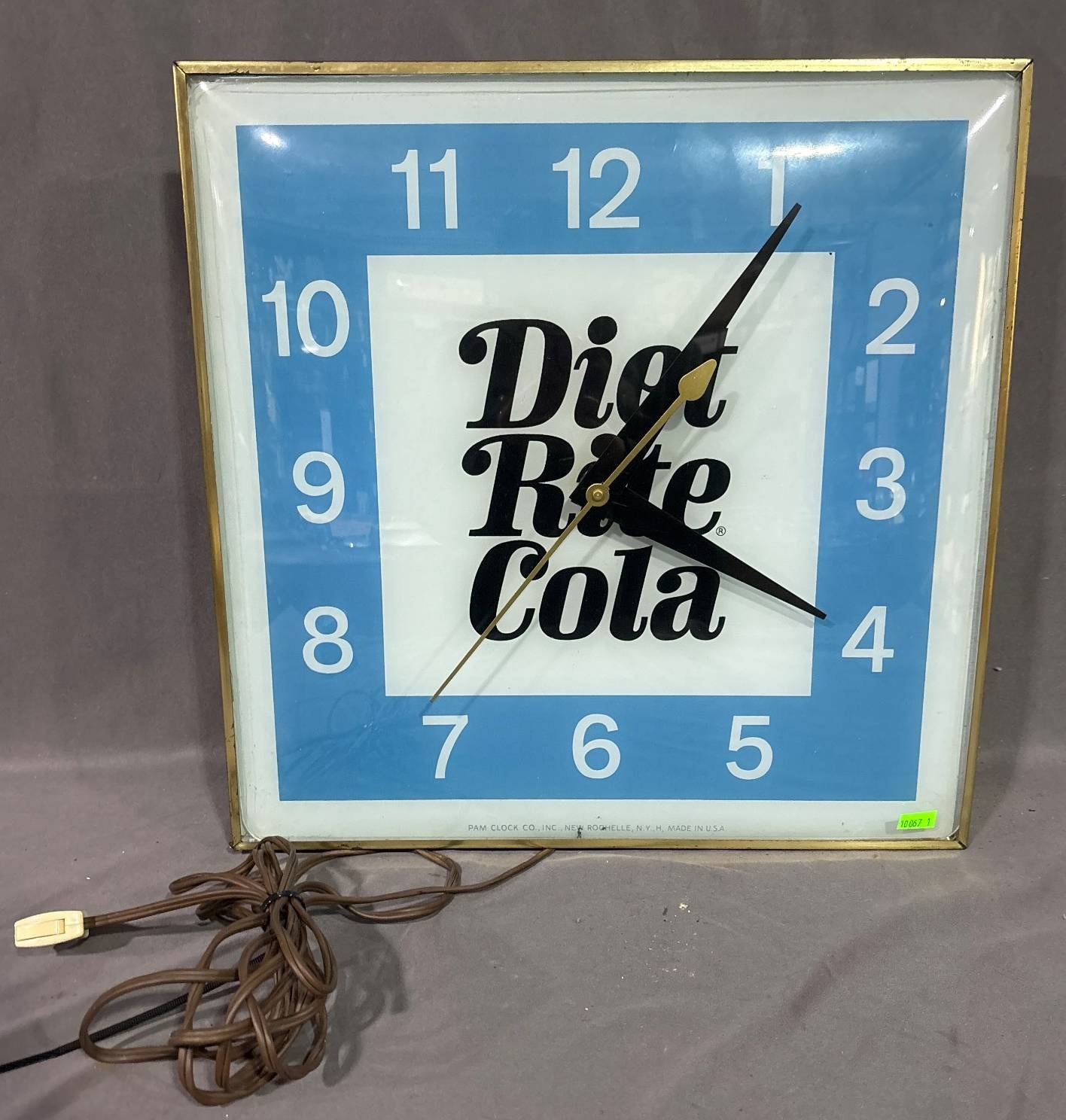 10067 Diet Rite Cola Bubble Glass Clock by Pam Clock Co., 15×15”