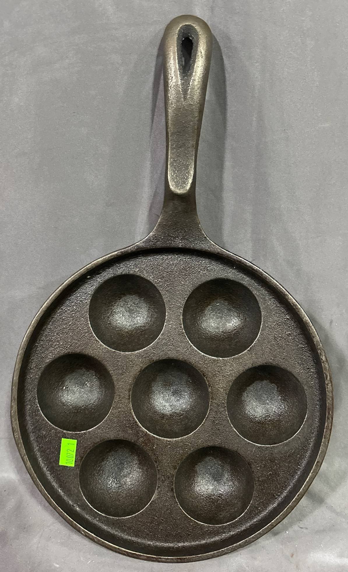 10072 Griswold Aebleskiver Cast Iron Pan with 7 Rounded Molds and Handle, 9” Diameter