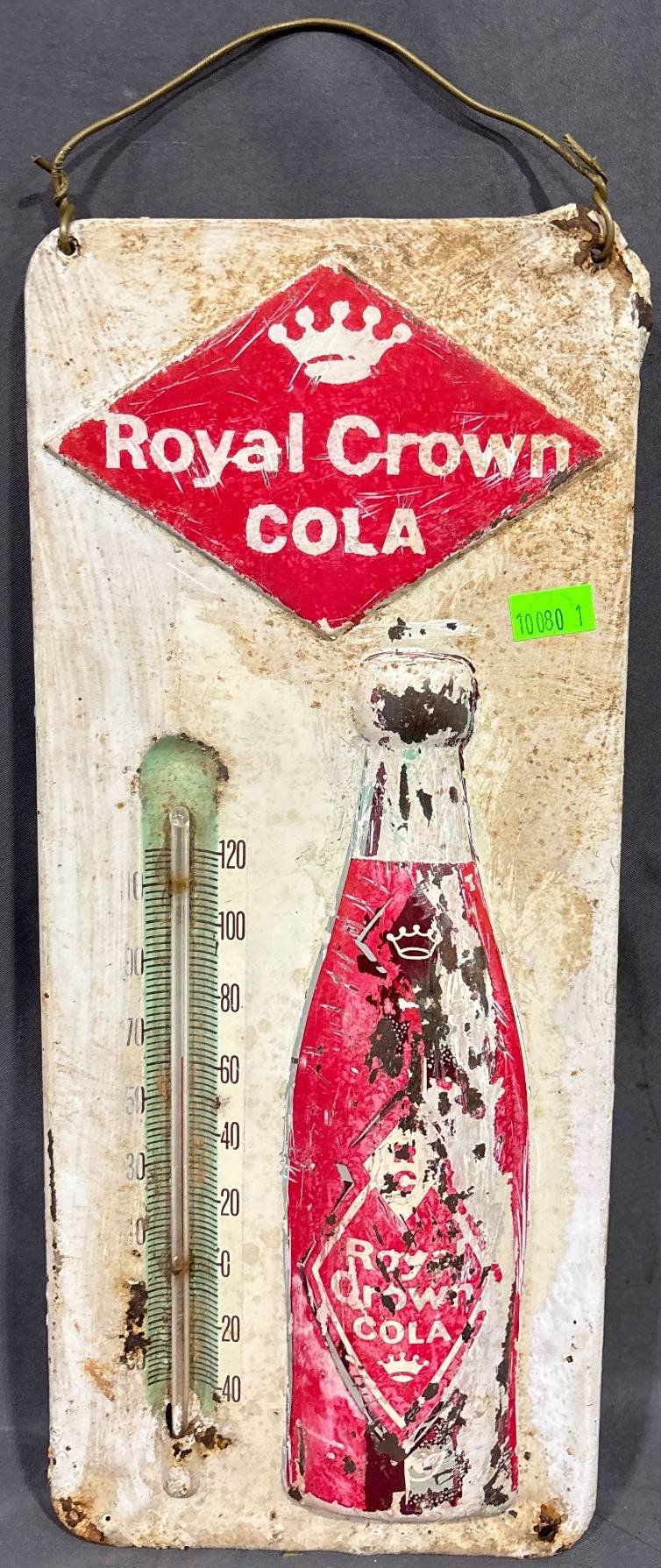 10080 Royal Crown Cola Tin Thermometer Wall Plaque, 15” Long