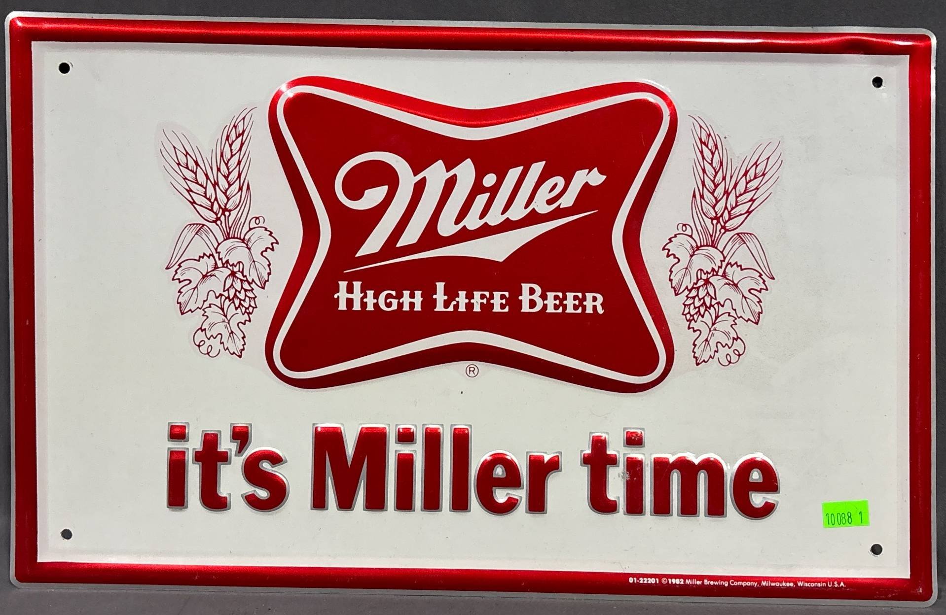 10088 Miller High Life Beer Tin Sign with Embossed Logo, 16?