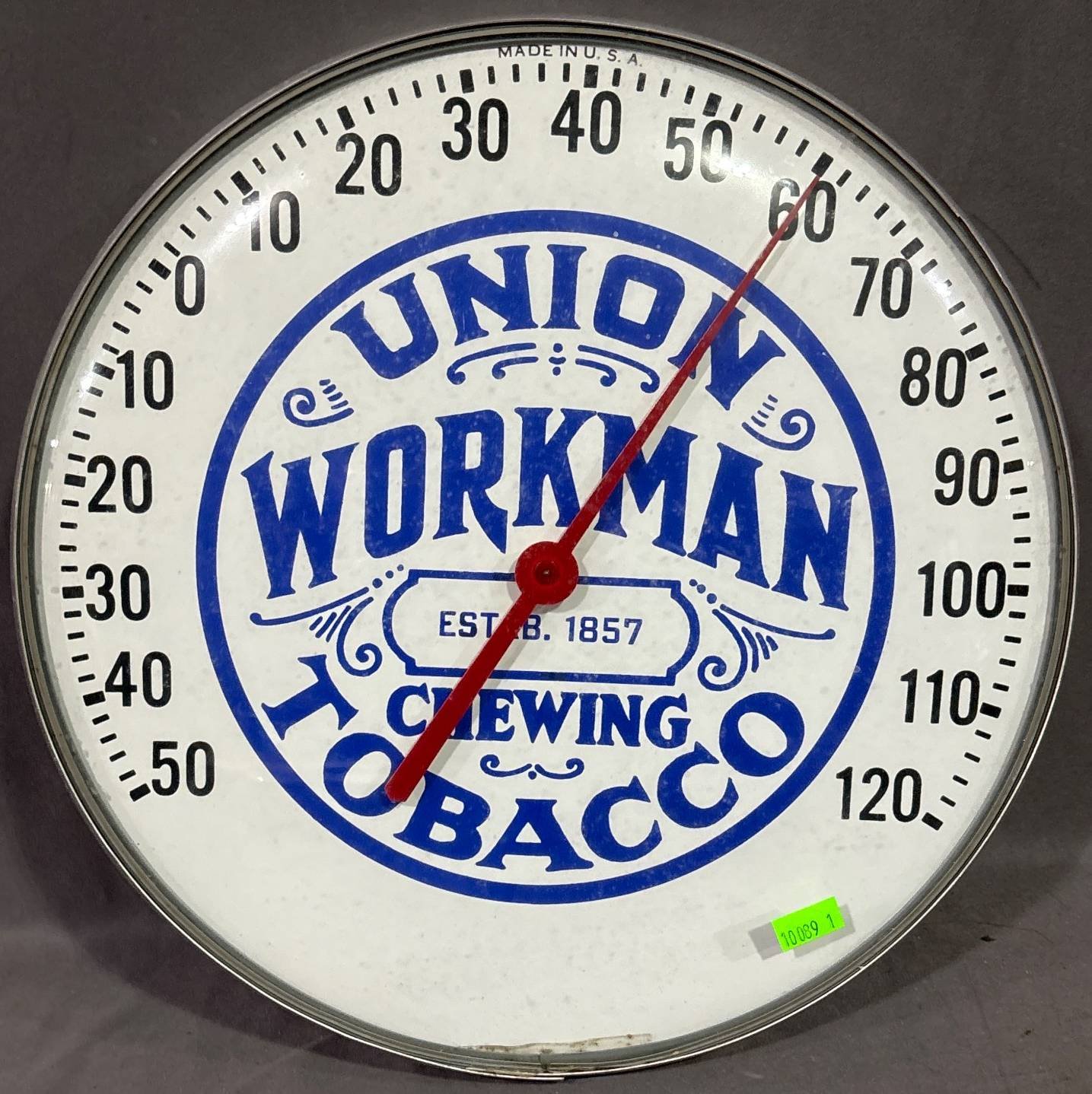 10089 Union Workman Chewing Tobacco 12” Diameter Thermometer