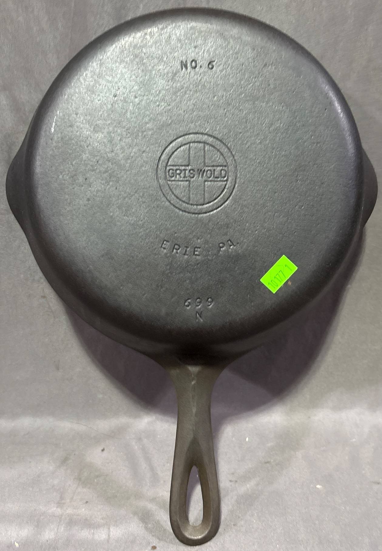 10177 Griswold No. 6 Cast Iron Skillet, Erie, PA, 9” Diameter
