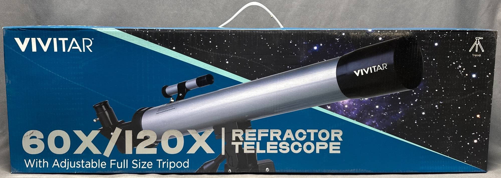 10186 Vivitar 60X/120X Refractor Telescope with Adjustable Full-Size Tripod in Sealed Box