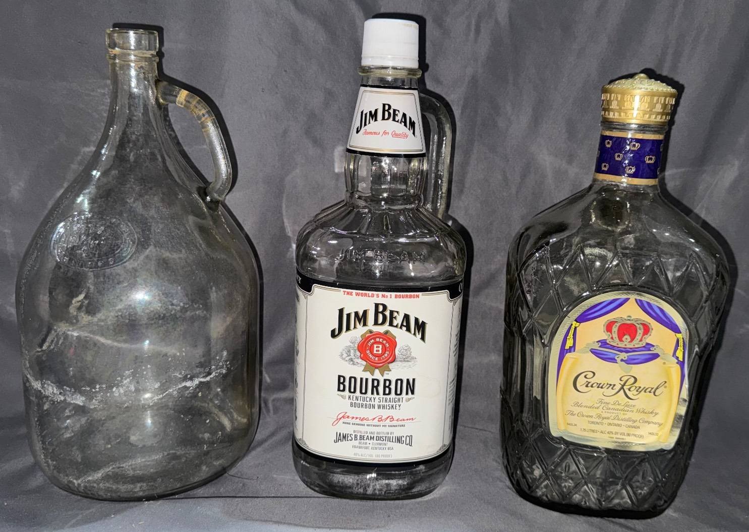 10205 3 Clear Glass Bottles Inc. Jim Beam and Crown Royal