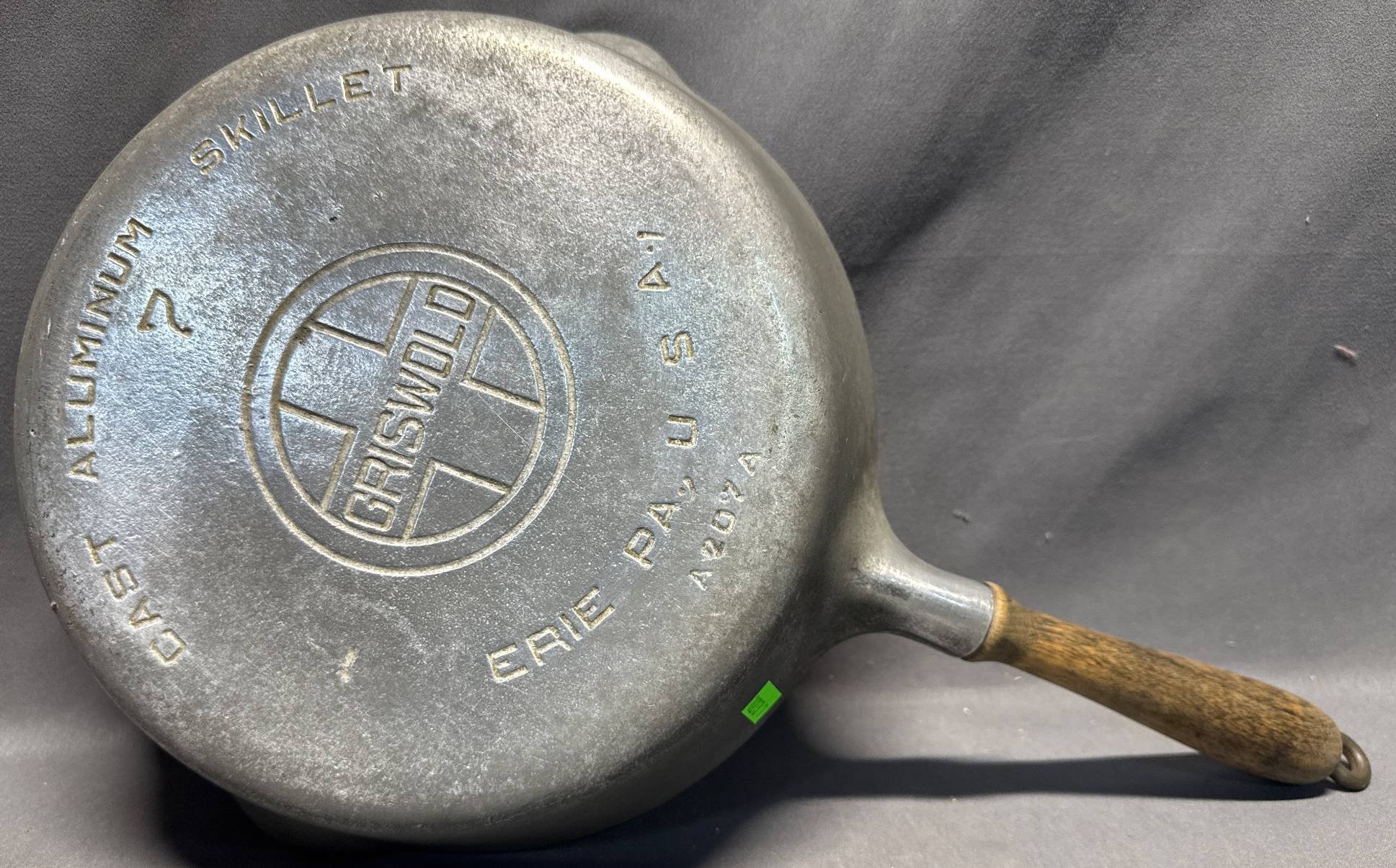 10233 Griswold No. 7 Cast Aluminum Skillet, Erie PA, USA with Wood Handle, 9.75”,