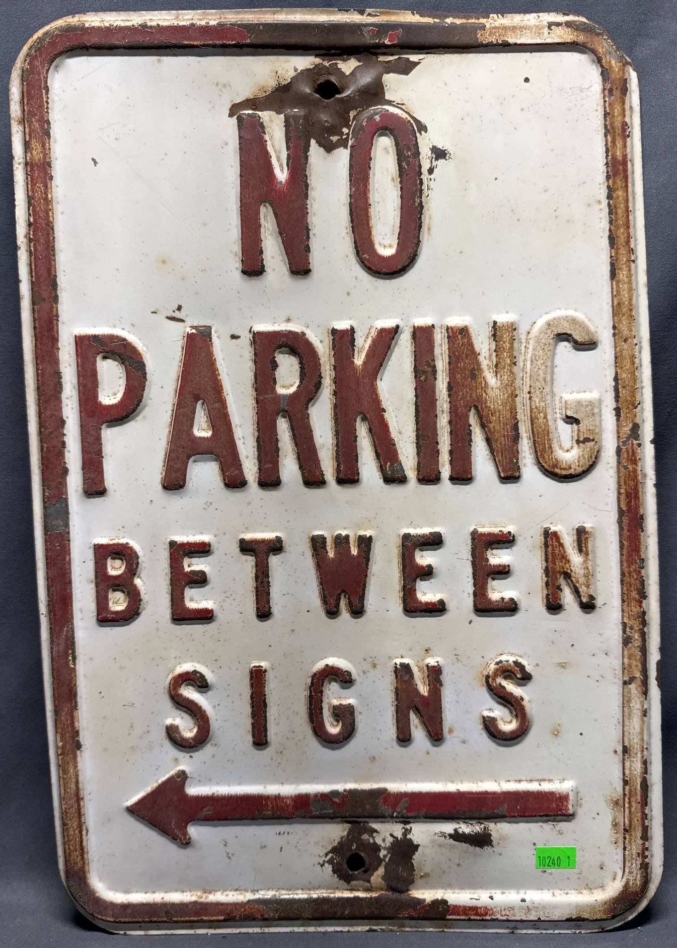 10239 Metal No Parking Sign with Embossed Text, 12”x18”