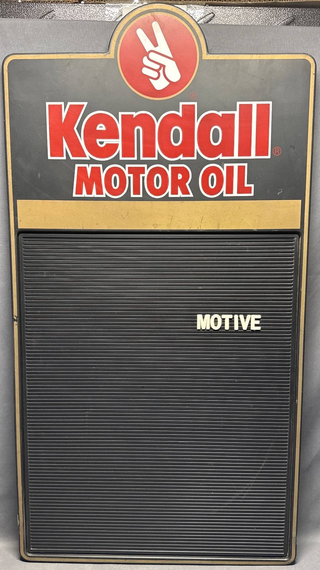 10241 Kendall Motor Oil Sign with Letter Board and 6 Letters Spelling ‘MOTIVE’, 19”x36”