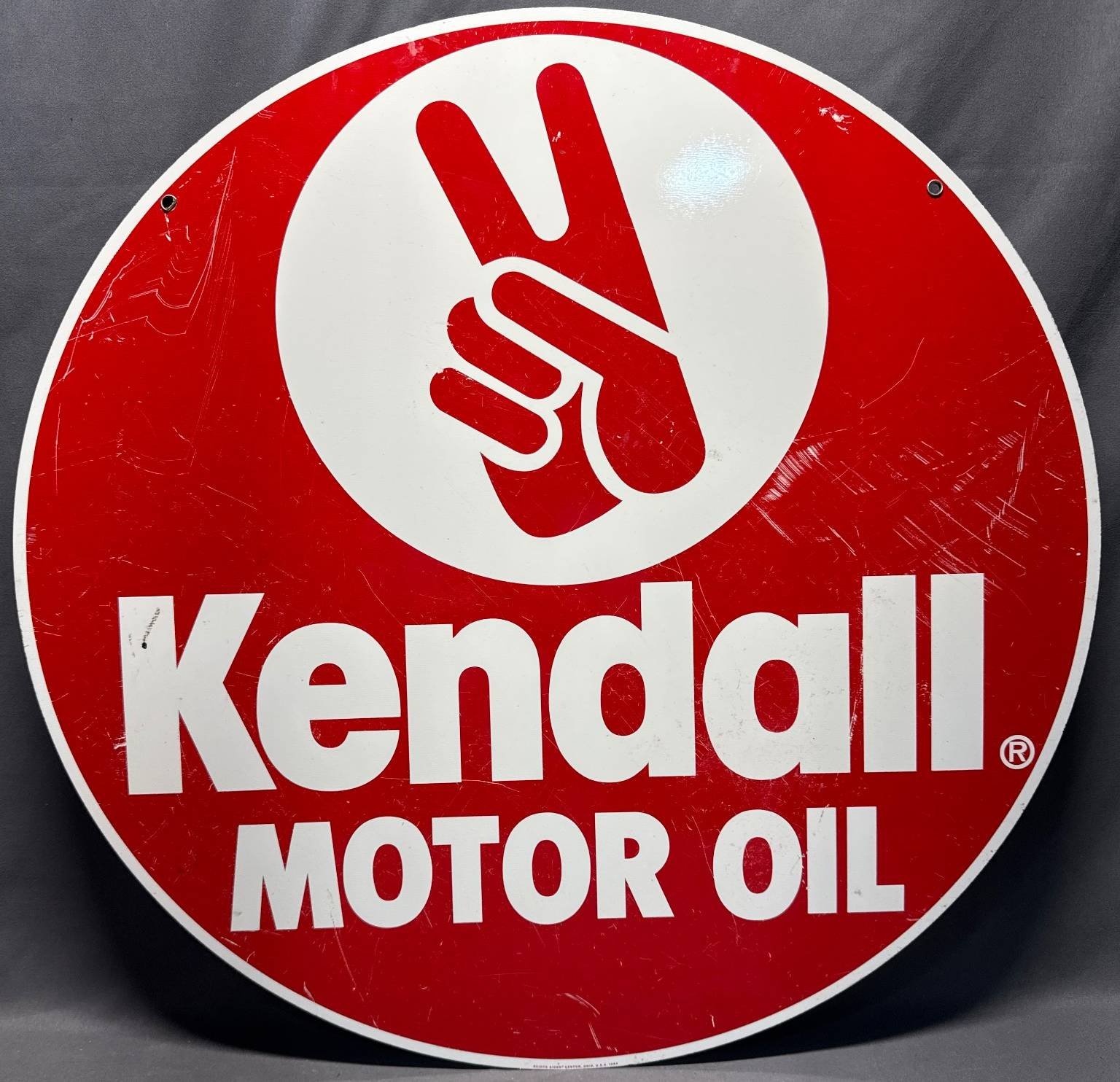 10257 Kendall Motor Oil Advertising Sign with Peace Hand Logo, 26.25”x19.5”