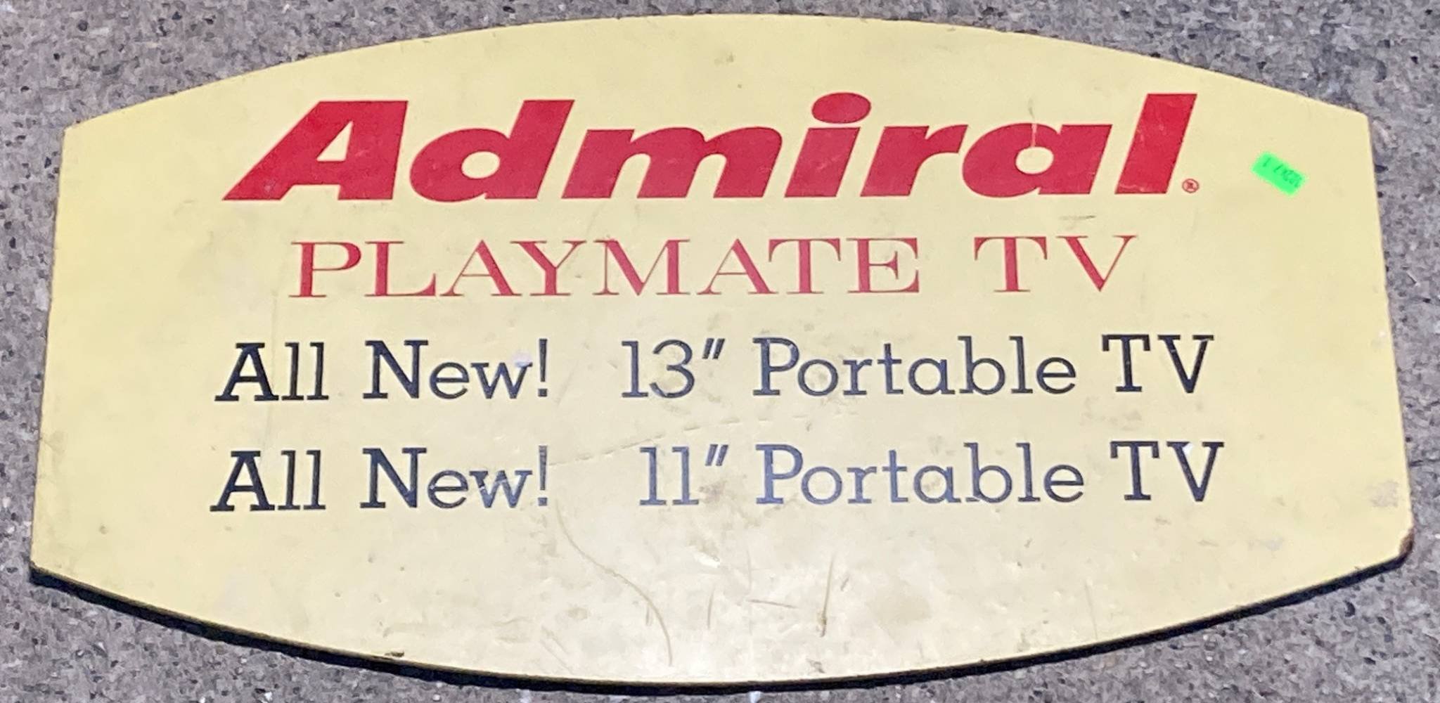 10247 Admiral Playmate TV Advertising Display Board, 20”x11”