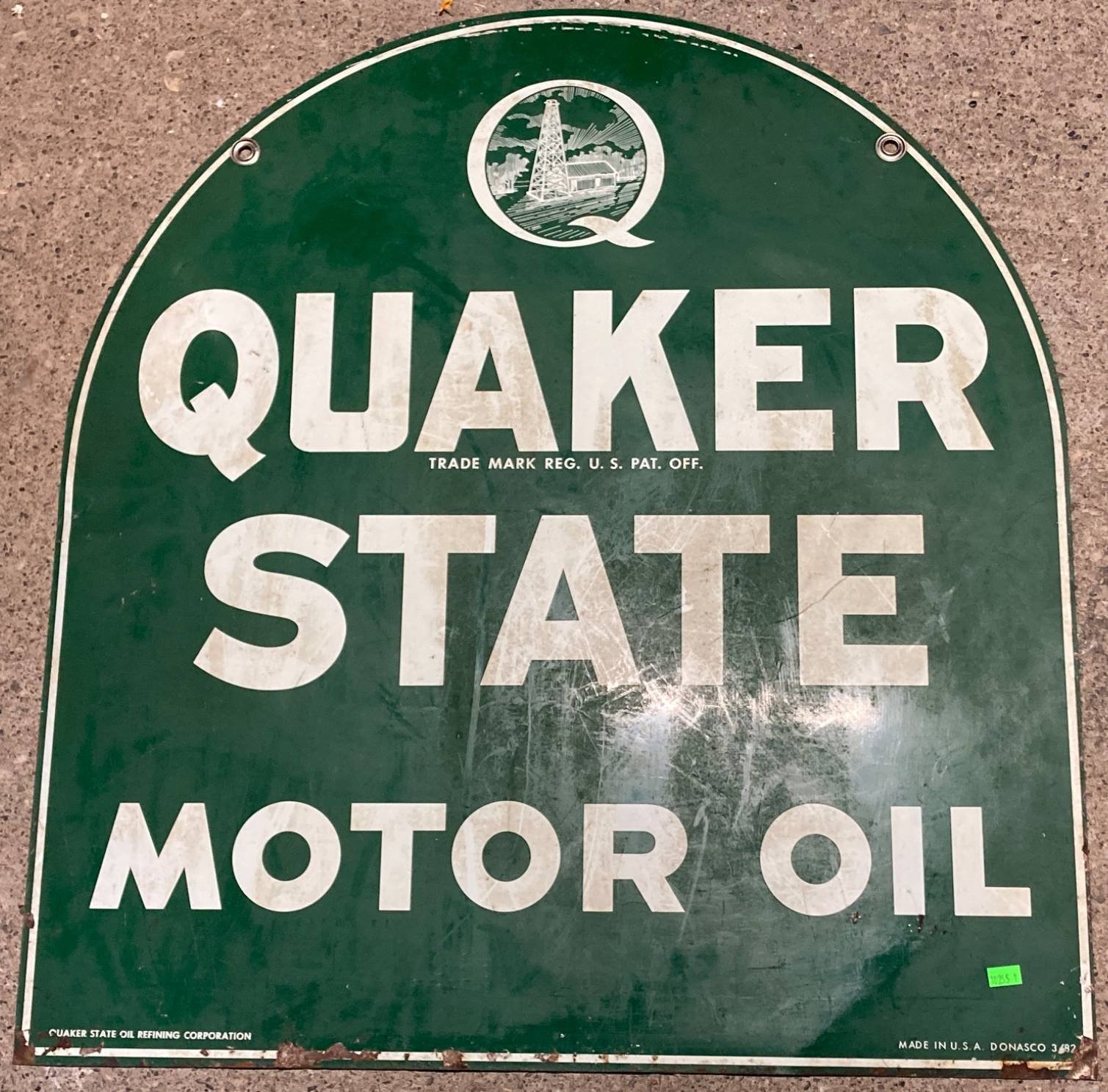 10255 Quaker State Motor Oil Double-Sided Metal Sign, 26.5”x28.75”