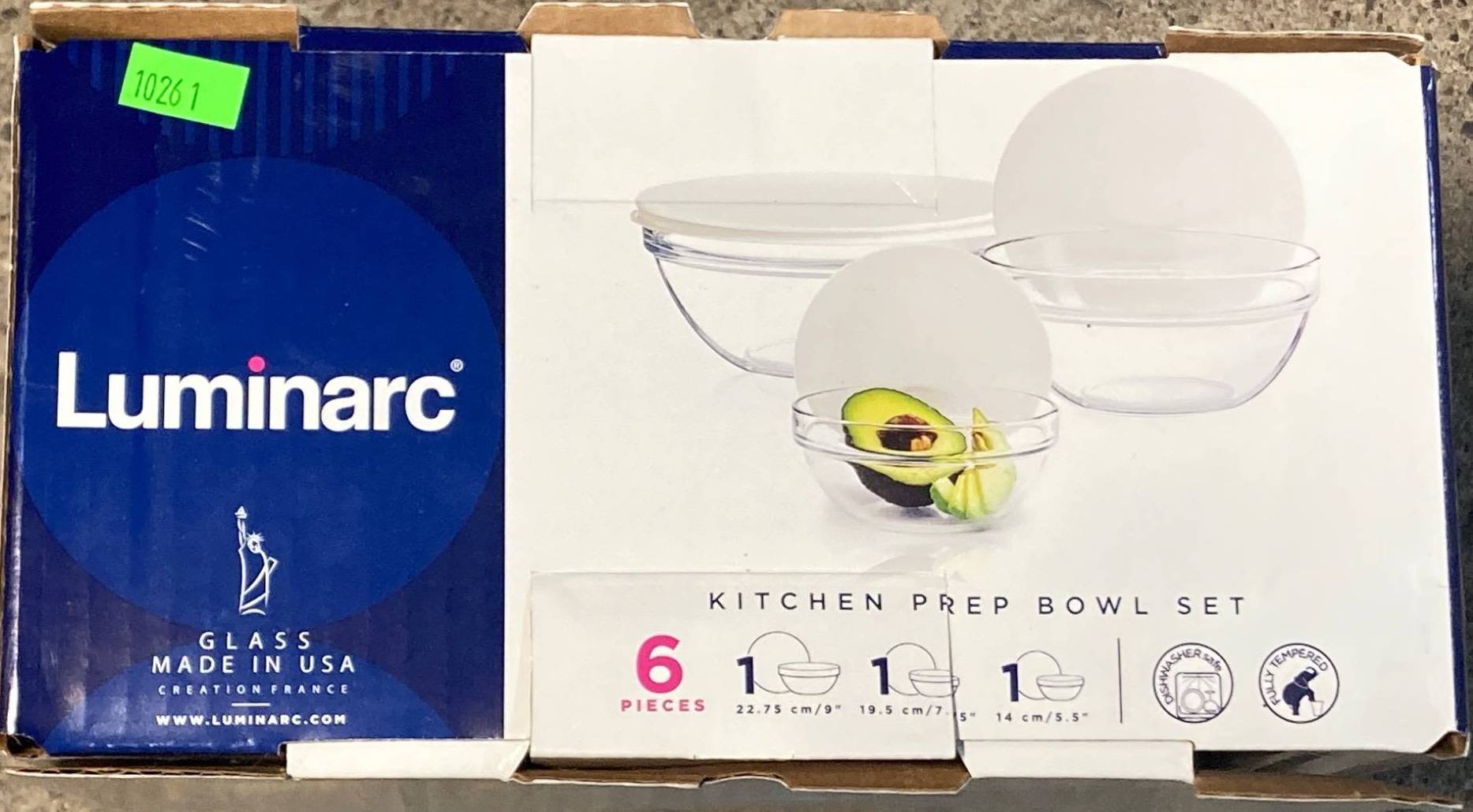 10261 Luminarc Glass Kitchen Prep Bowls, 6 Pieces, 9.5”x9.5”x5”