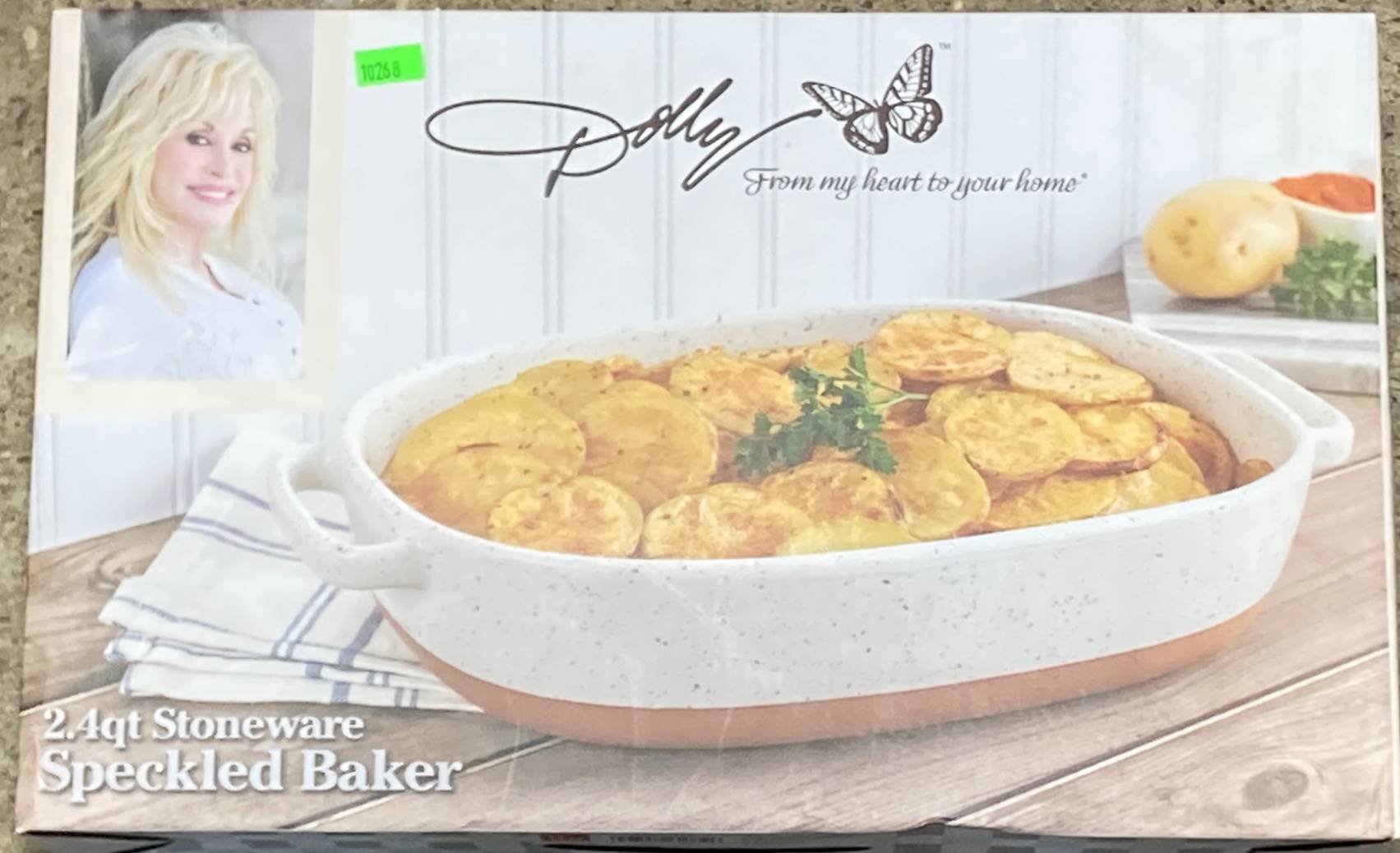 10268 2.4-Qt Stoneware Speckled Baker with Handles , 13.5”x8.5”x2.5”