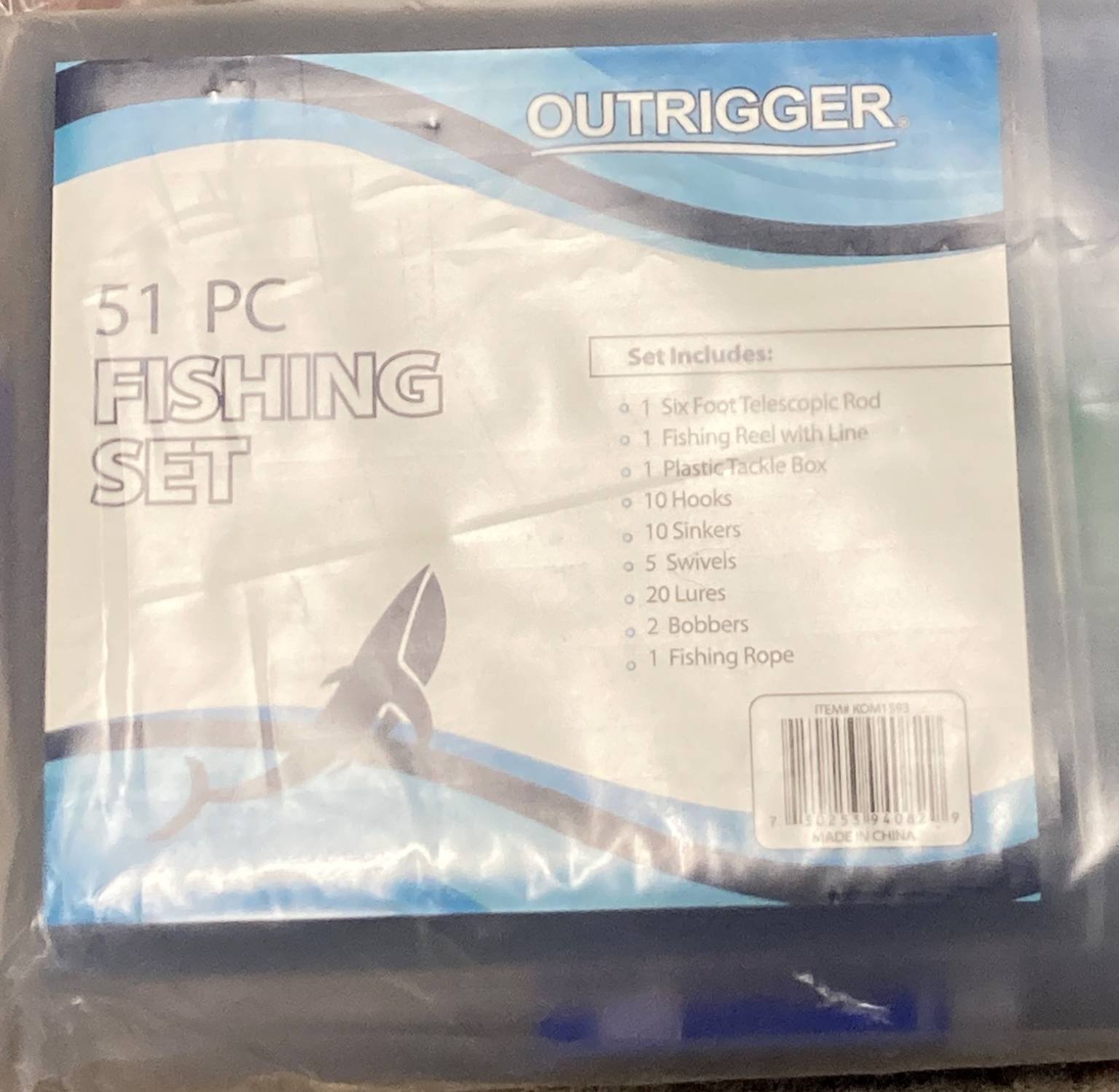 10269 51-Piece Outrigger Fishing Kit with Telescopic Rod, Reel, and Accessories, 17”x5.5”x3.5”