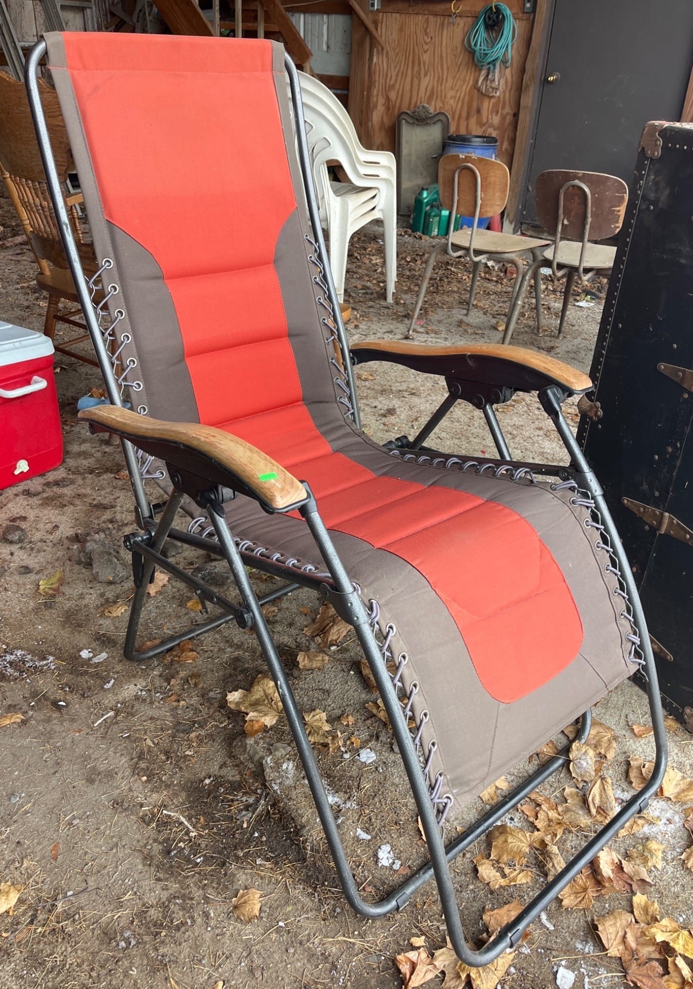 1007 Reclining Metal-Framed Chair with Red and Gray Fabric Seat