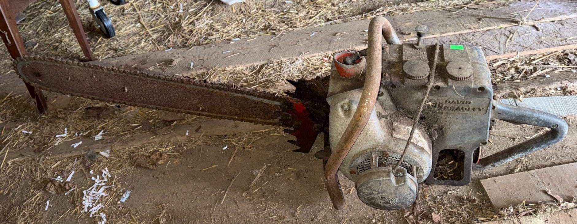 1019 David Bradley Chainsaw with Long Metal Blade and Gasoline Engine