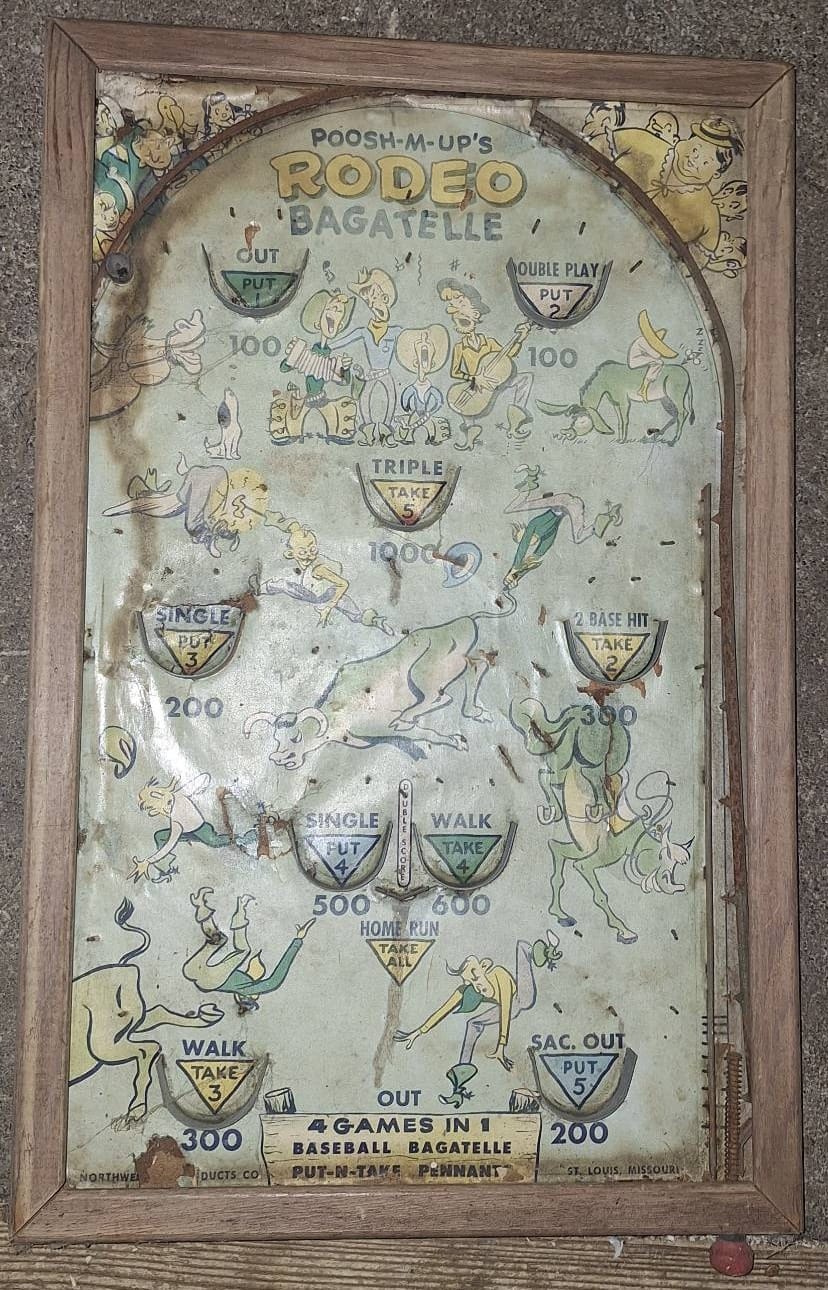 102 Framed 4-in-1 Baseball Themed Bagatelle Game Board, 12×20