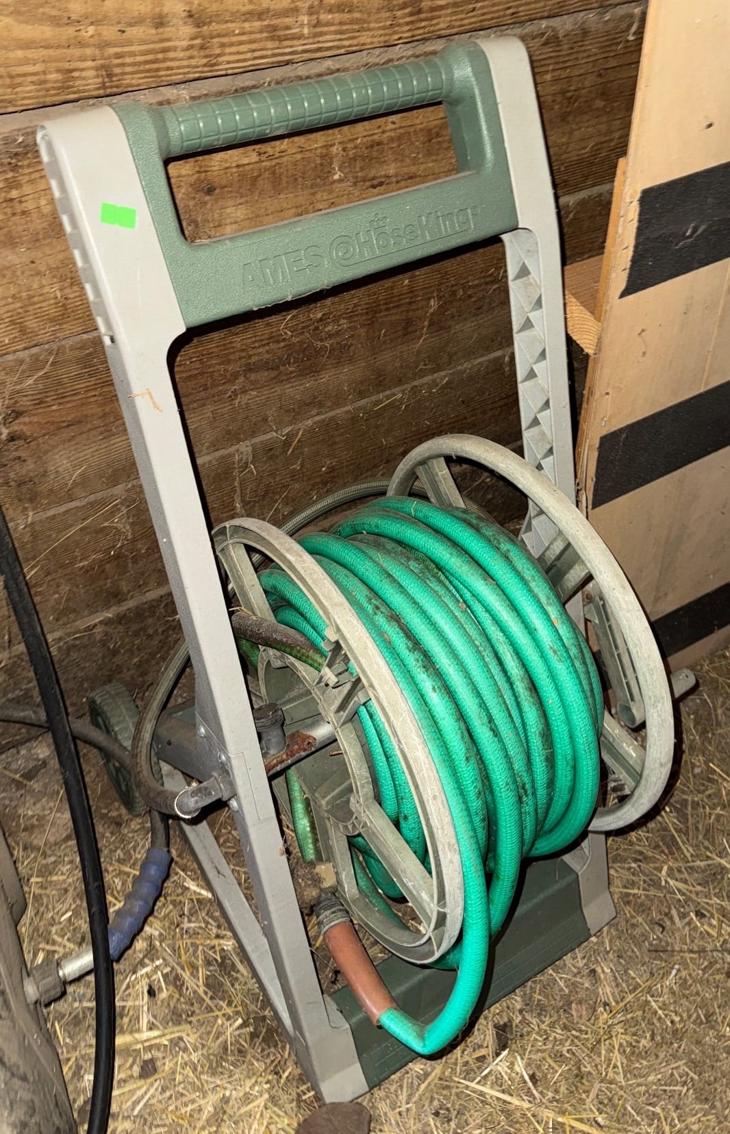 1022 Plastic and Metal Ames Hose Reel With Green Garden Hose