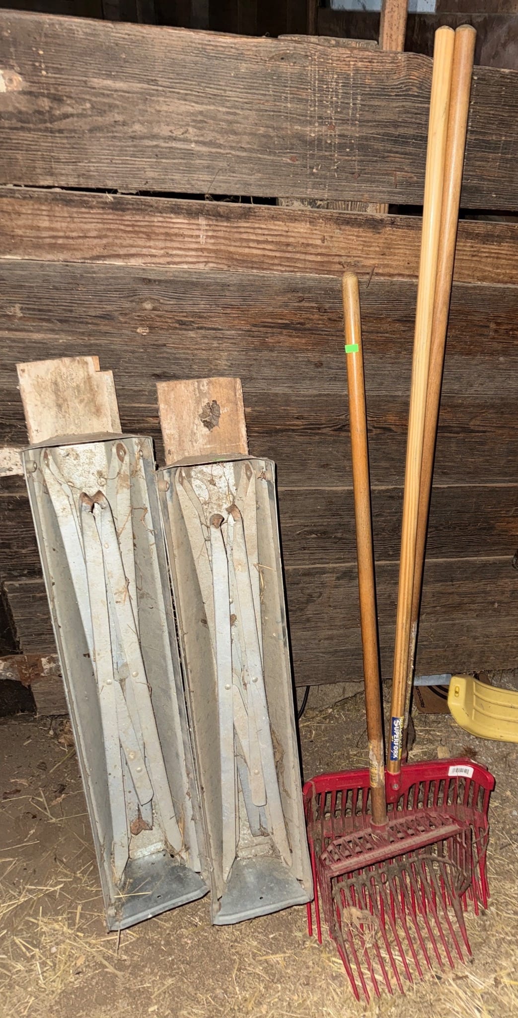 1023 Metal Sawhorses and Muck Forks with Wooden Handles