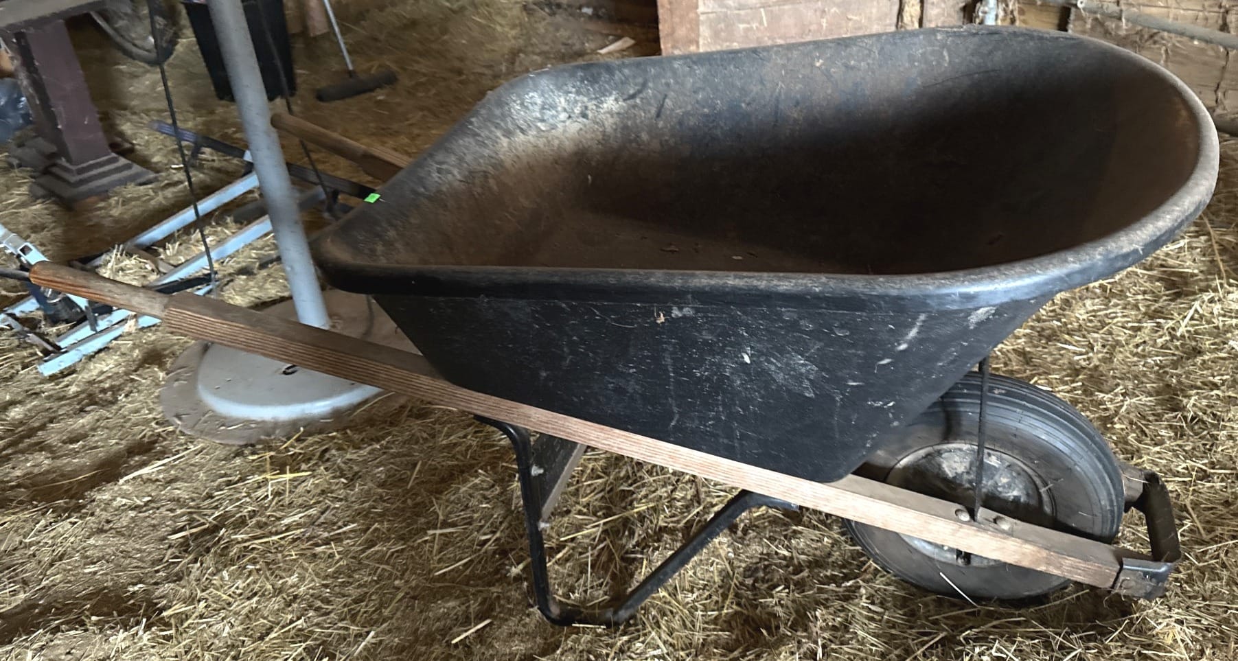1031 Metal Wheelbarrow with Black Tray and Single Rubber Tire