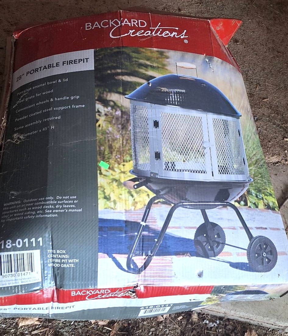 1040 Backyard Creations Outdoor Fire Pit With Mesh Screen and Wheels