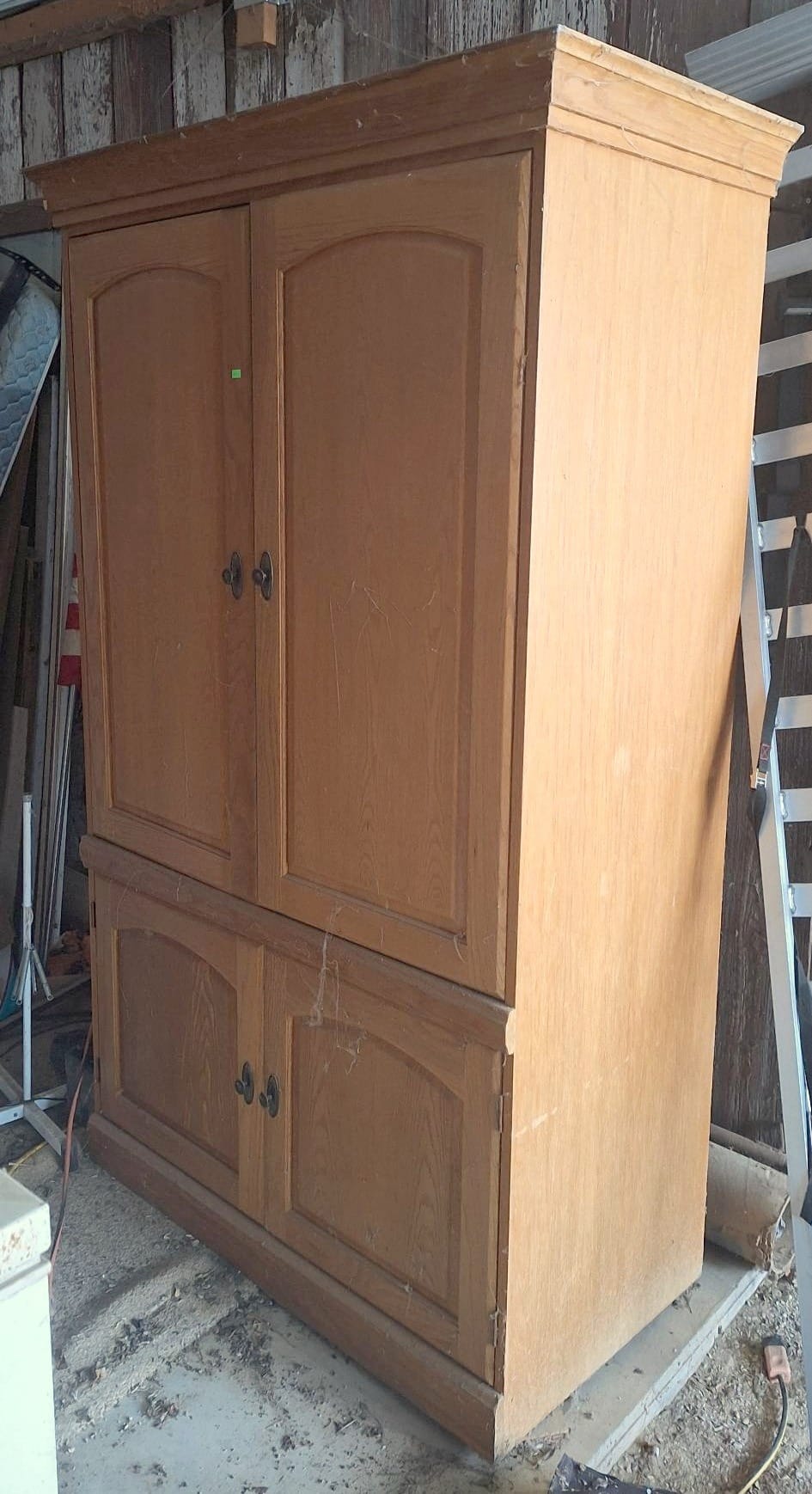 123 White Wood Cabinet With Shelving and Hinged Doors, 54”x56”x13”