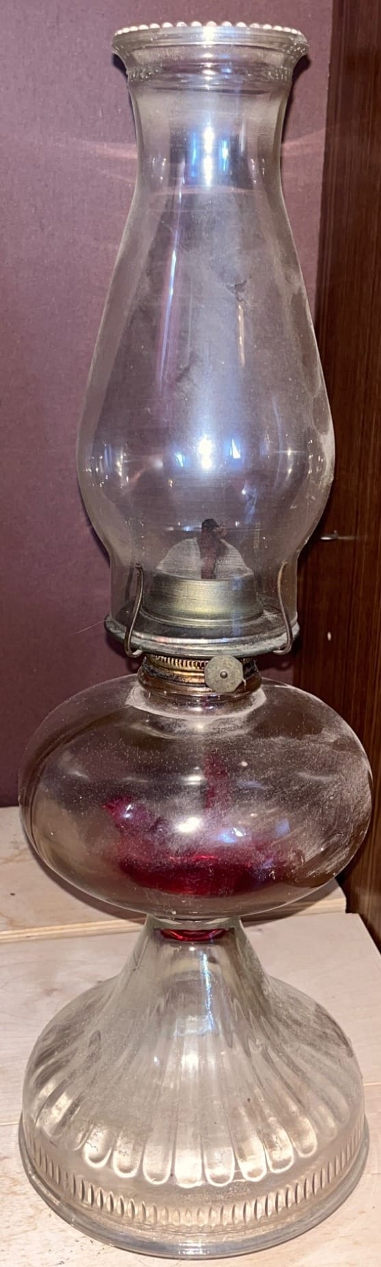 105 P & A MfgClear Glass Oil Lamp with Ribbed Base and Brass Burner 18? H
