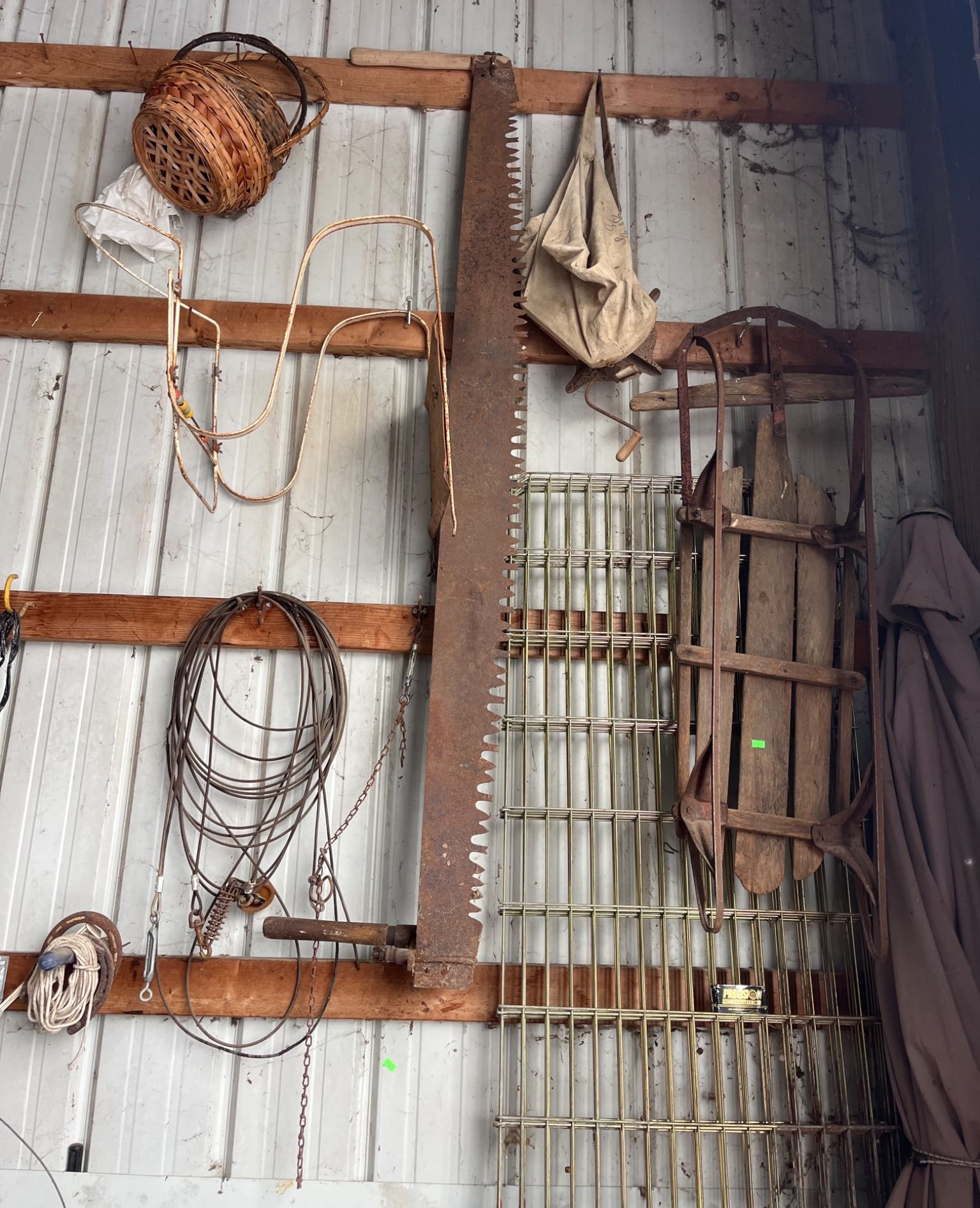 1058 Two Man Hand Saw, Baskets, Sled and More