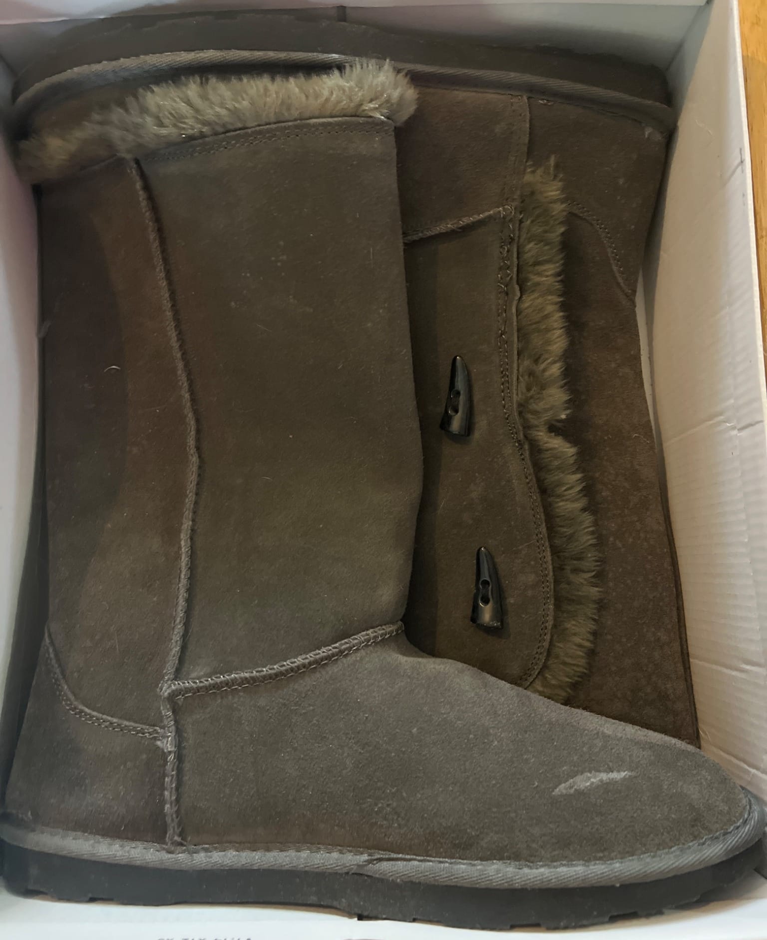 107 Womens Gray Suede Boots with Faux Fur Lining, Size 10