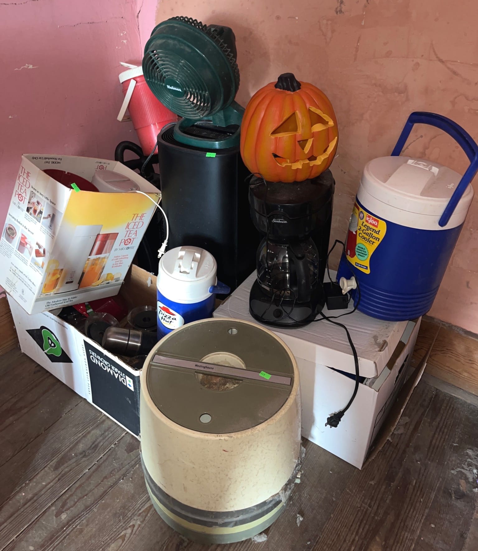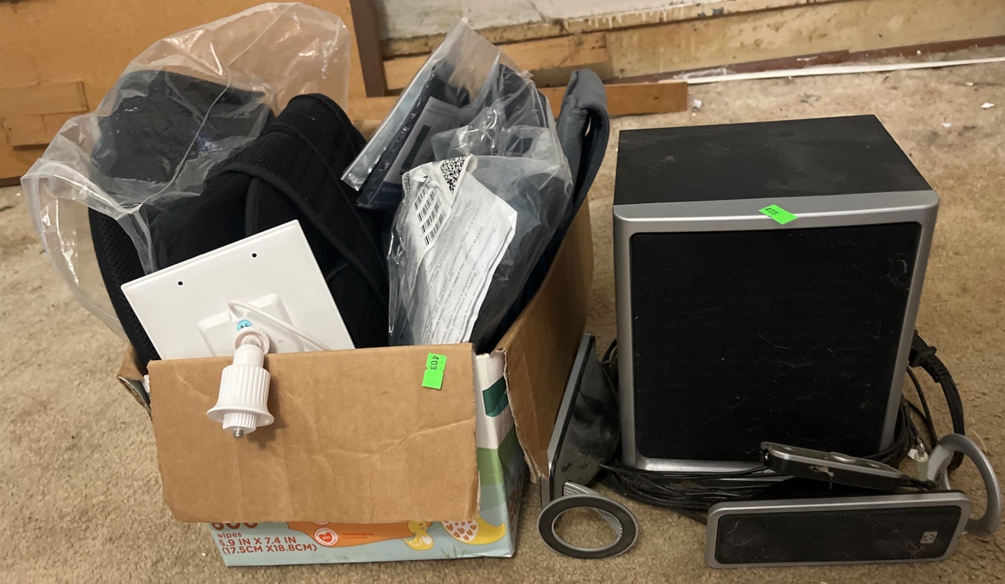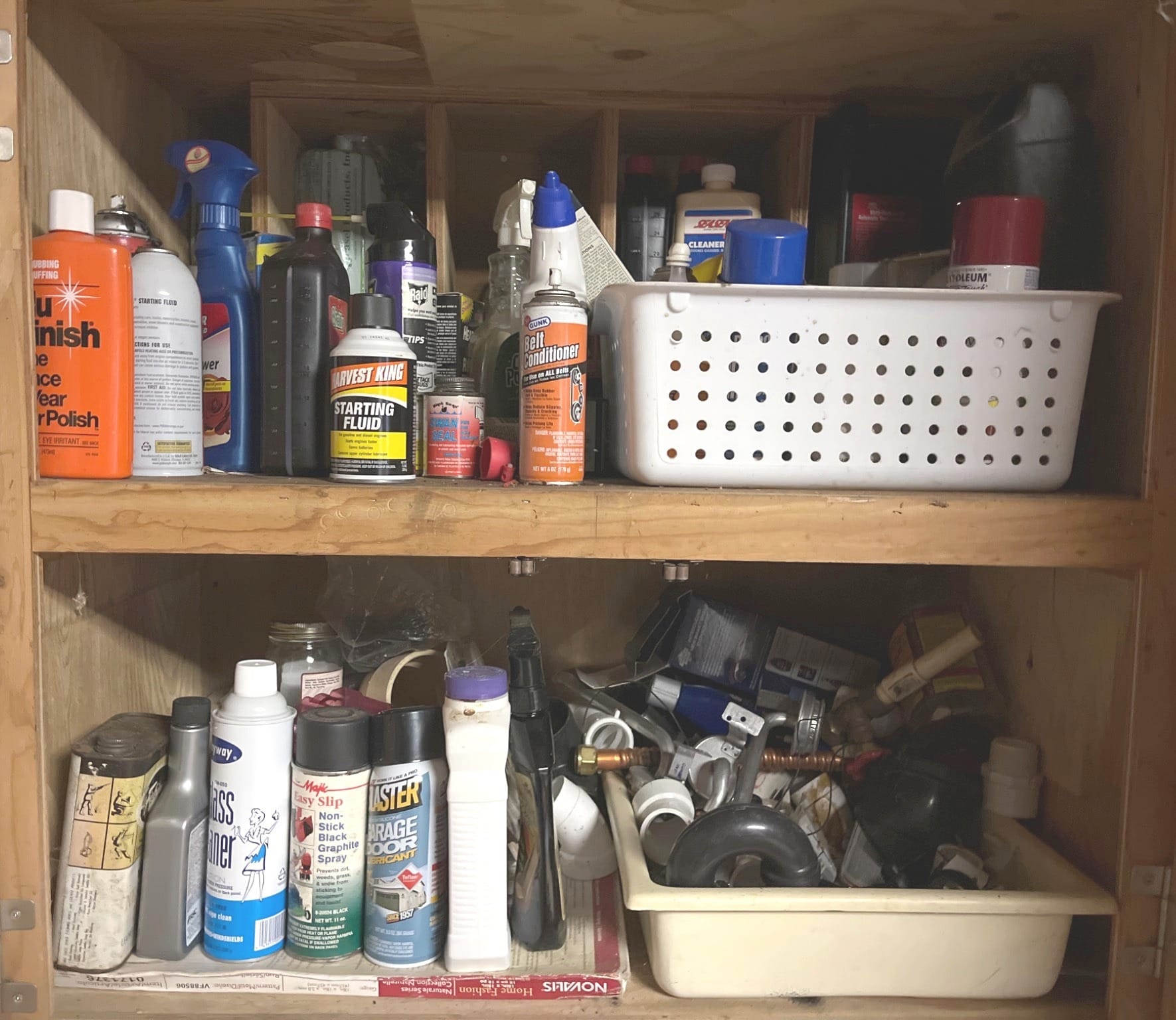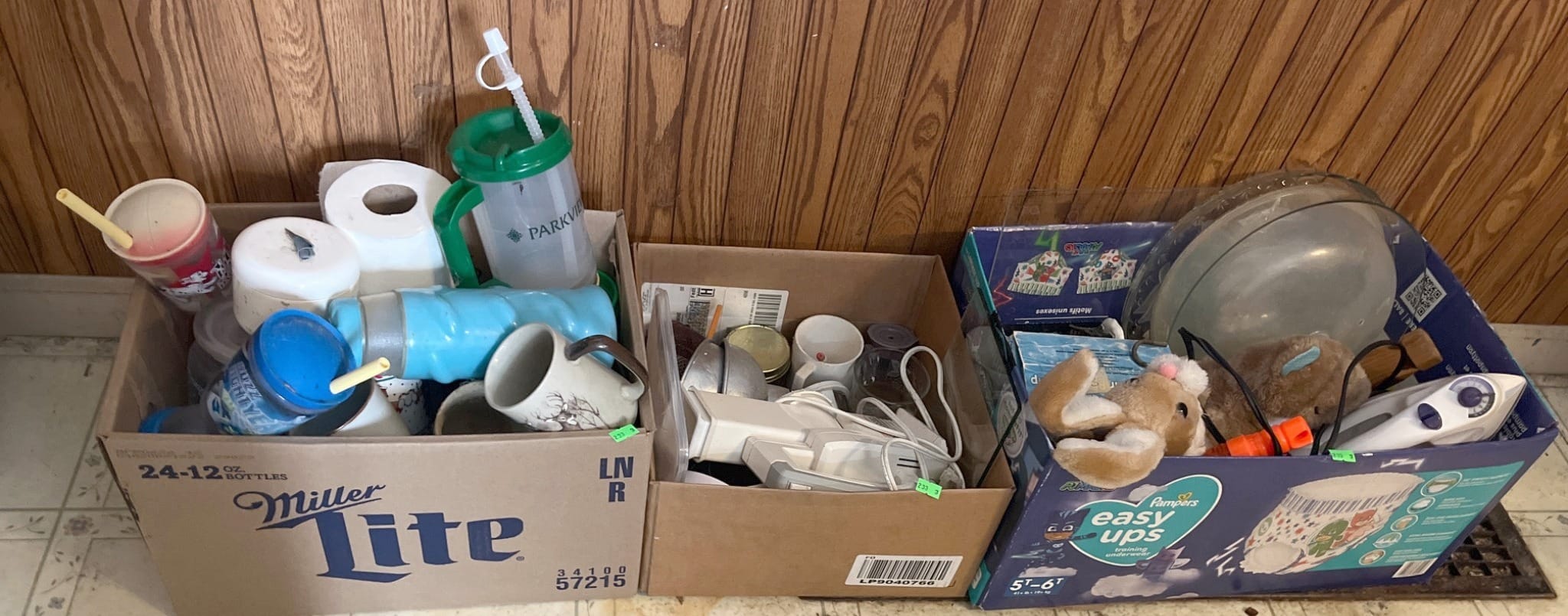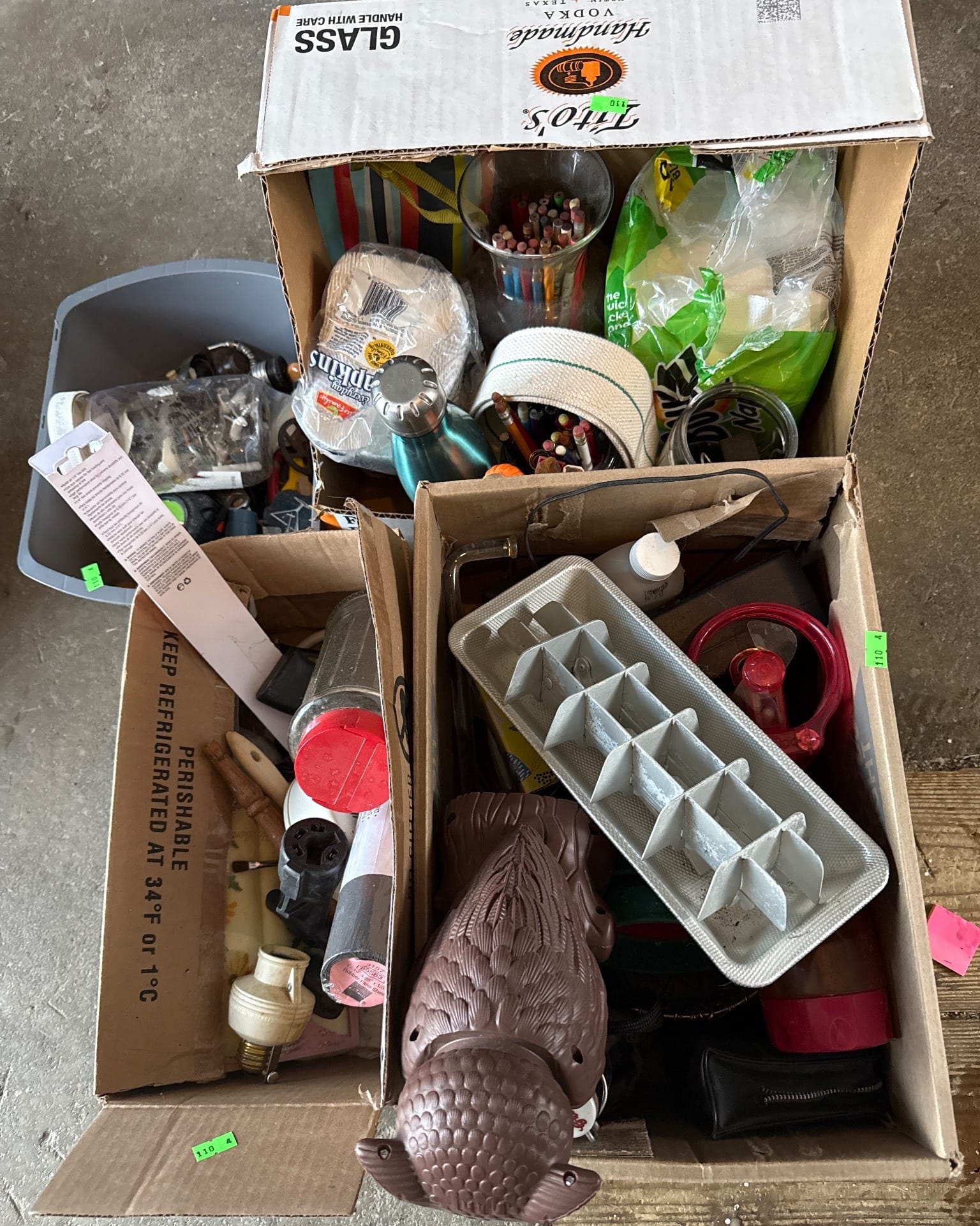 110 Household Tools and Items in Boxes and Bin