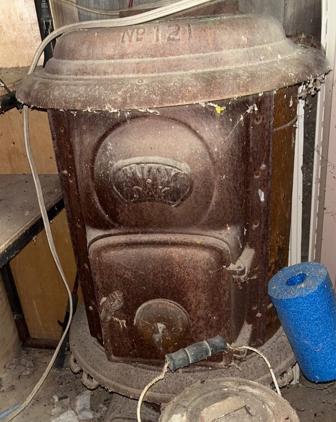 1105 Rustic Metal Heating Stove with Embossed Brand Marking