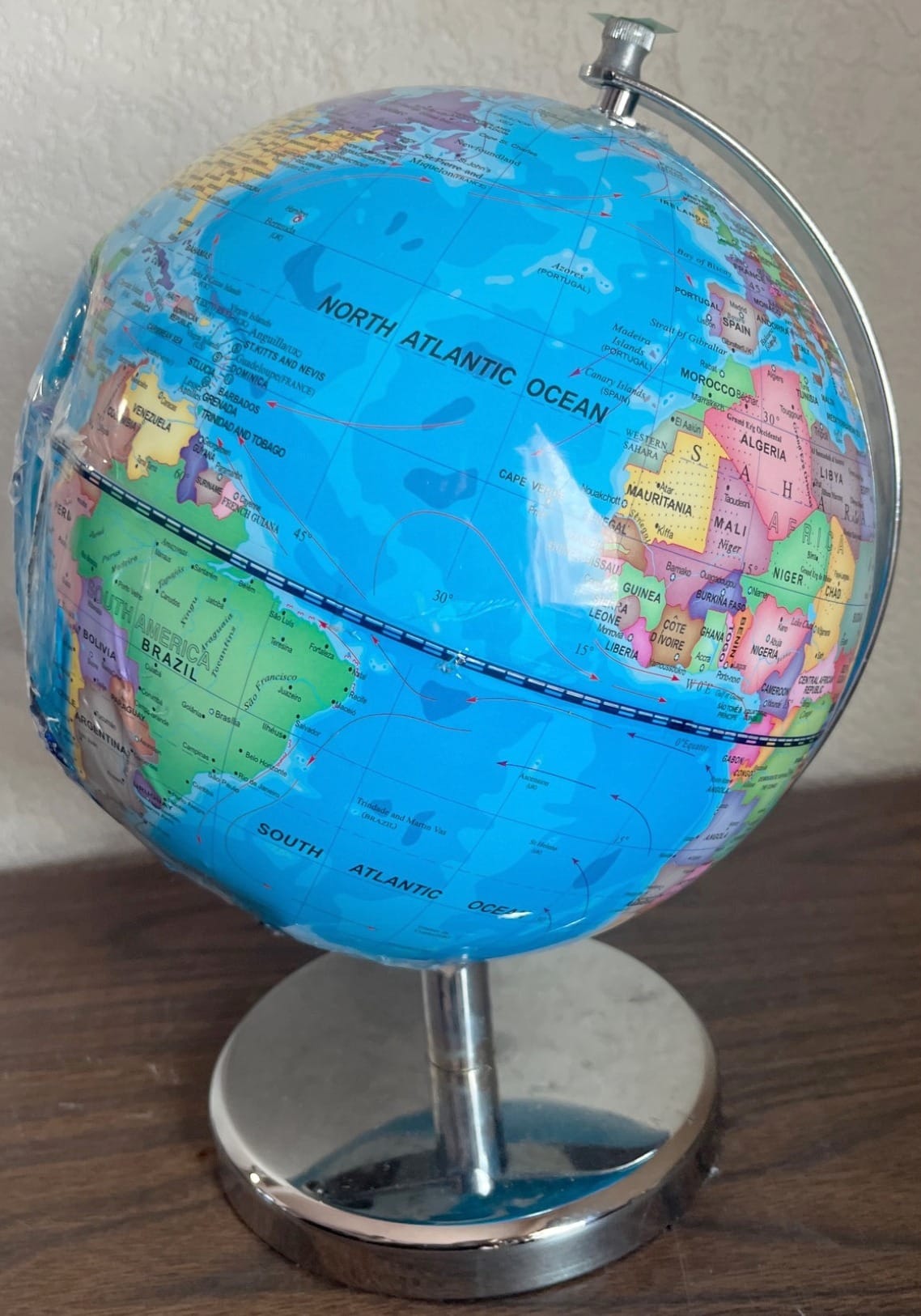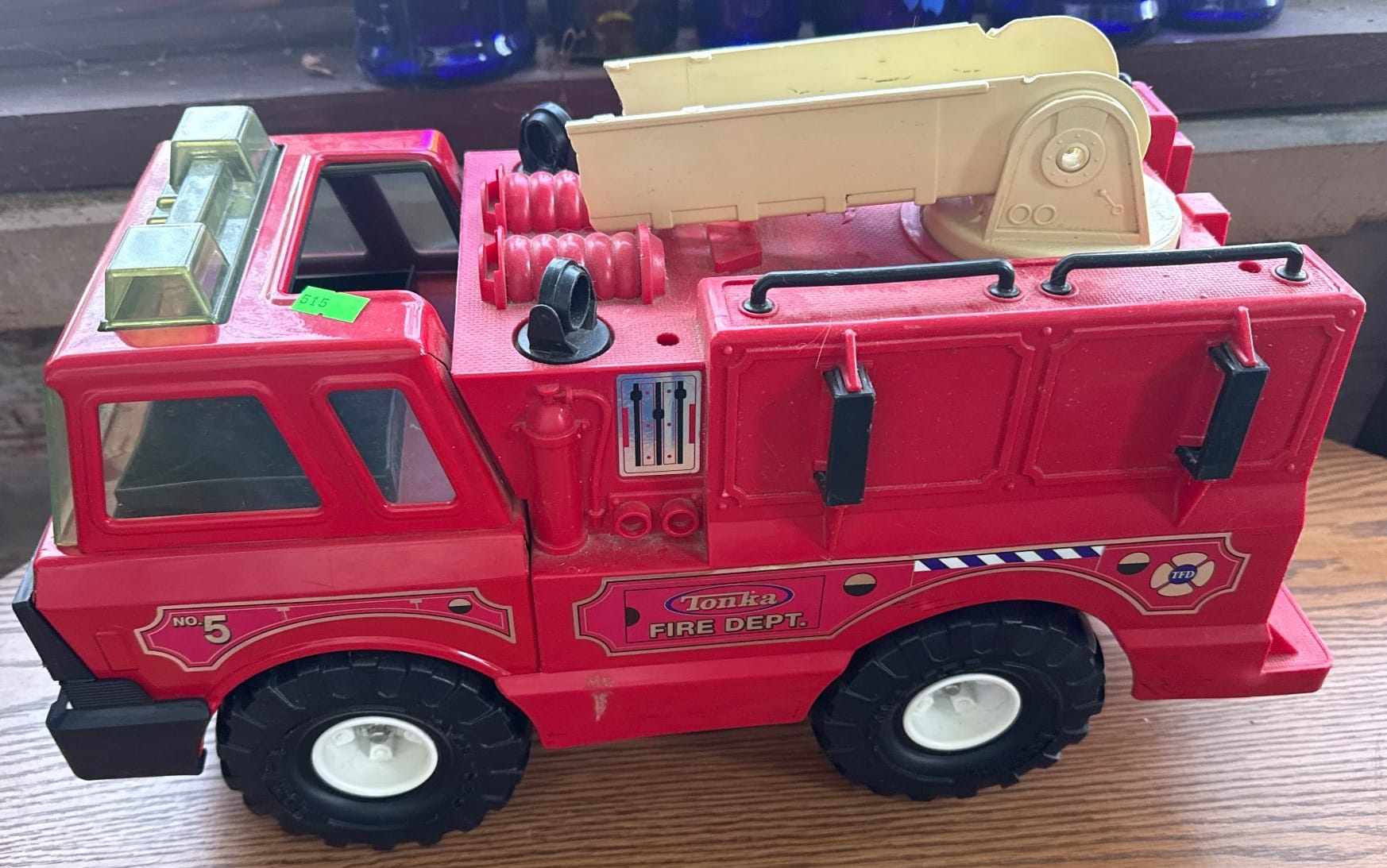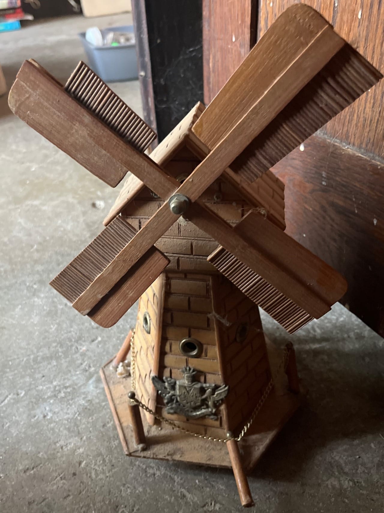 111 Brick-Patterned Tabletop Windmill with Rotating Wood Blades 13”, One pc broken
