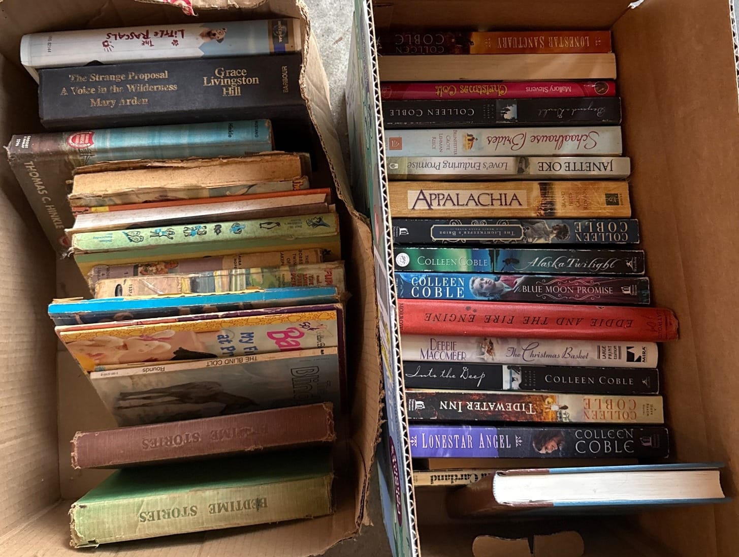112 Collection of Hardcover and Paperback Books by Various Authors Including Colleen Coble, Grace Livingston Hill and Janette Oke