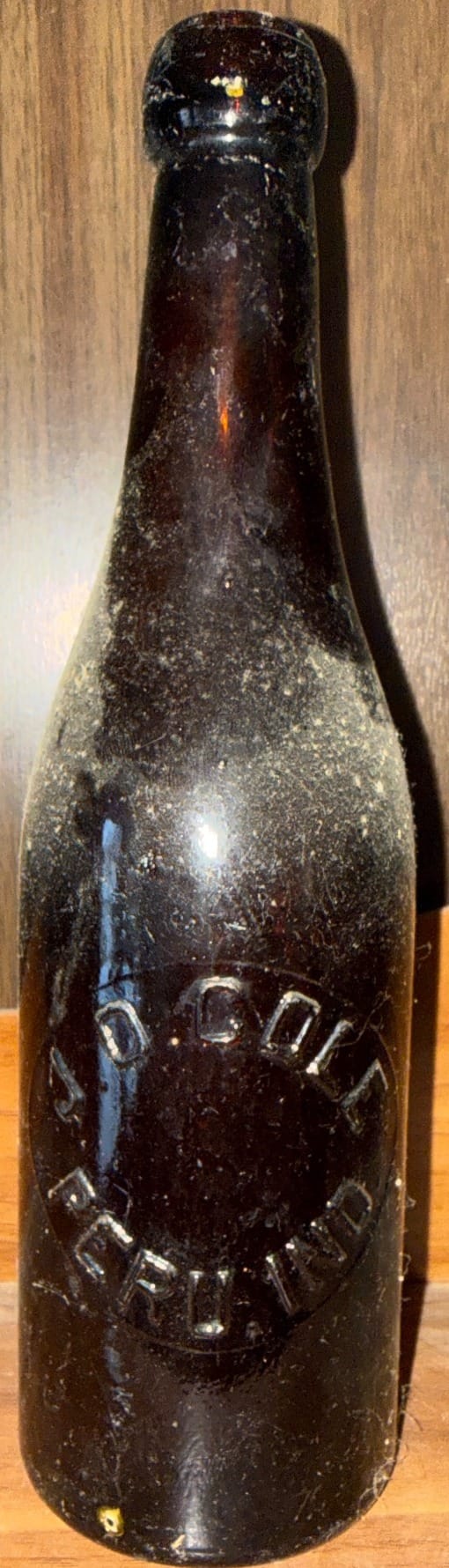116 Amber Glass Bottle Embossed ‘J.O. Cole Peru, IND,’ 9.5 Inches Tall