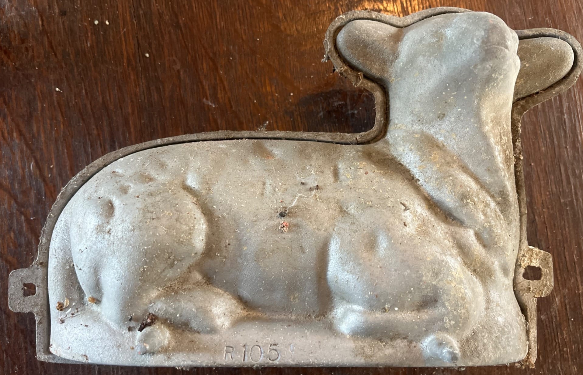 125 Cast Metal Lamb-Shaped Baking Mold with Hinged Design, makred R-105, 12? L