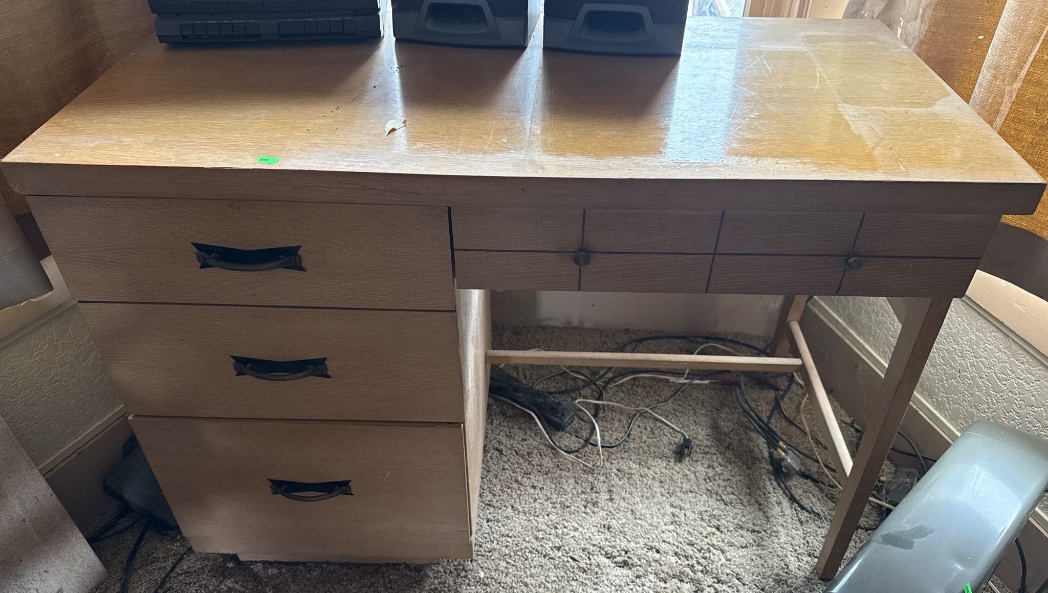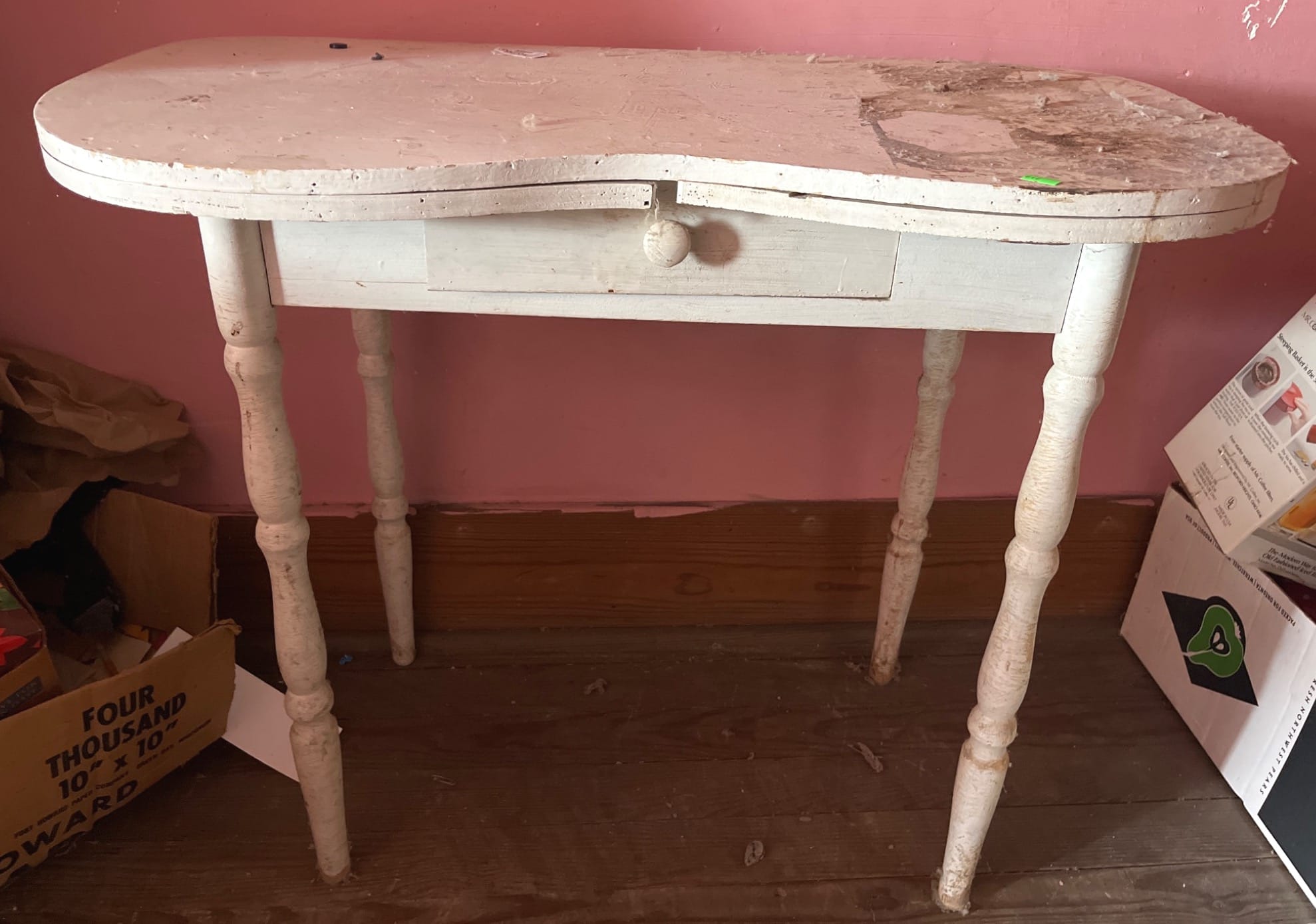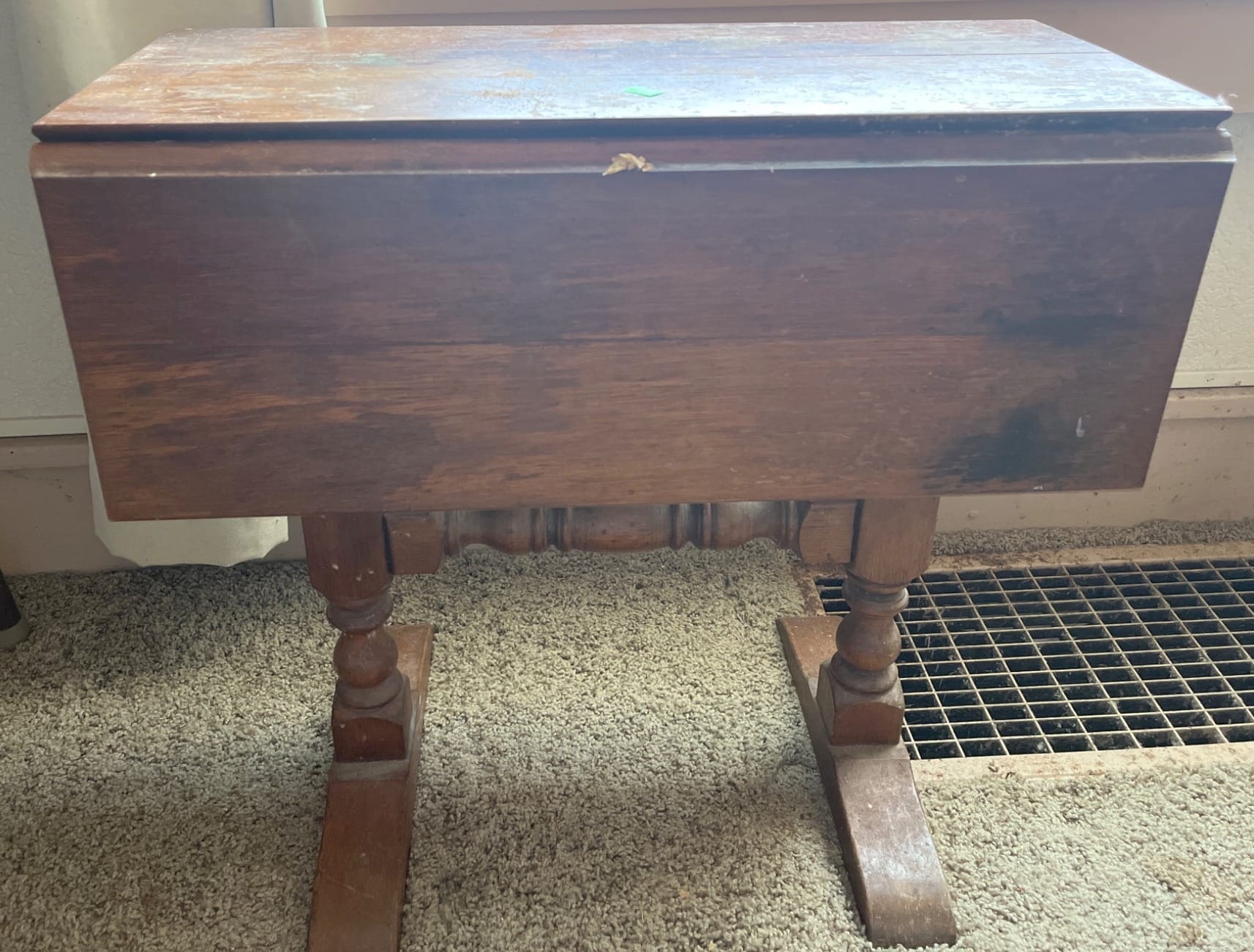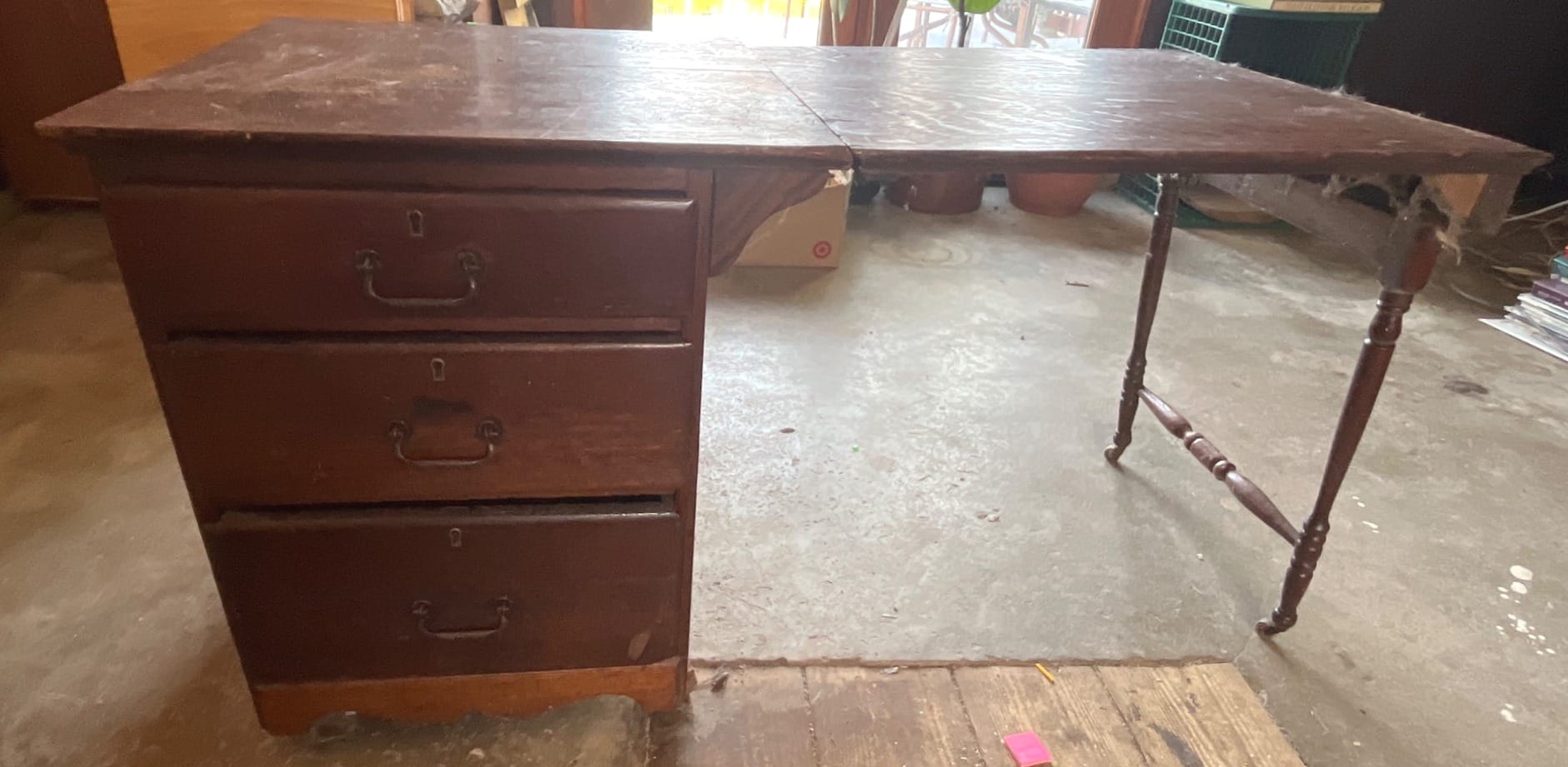 129 Drop-Leaf Desk with 3 Drawer Storage and Folding Support 23? x 22? x 26?, table extension needs repair