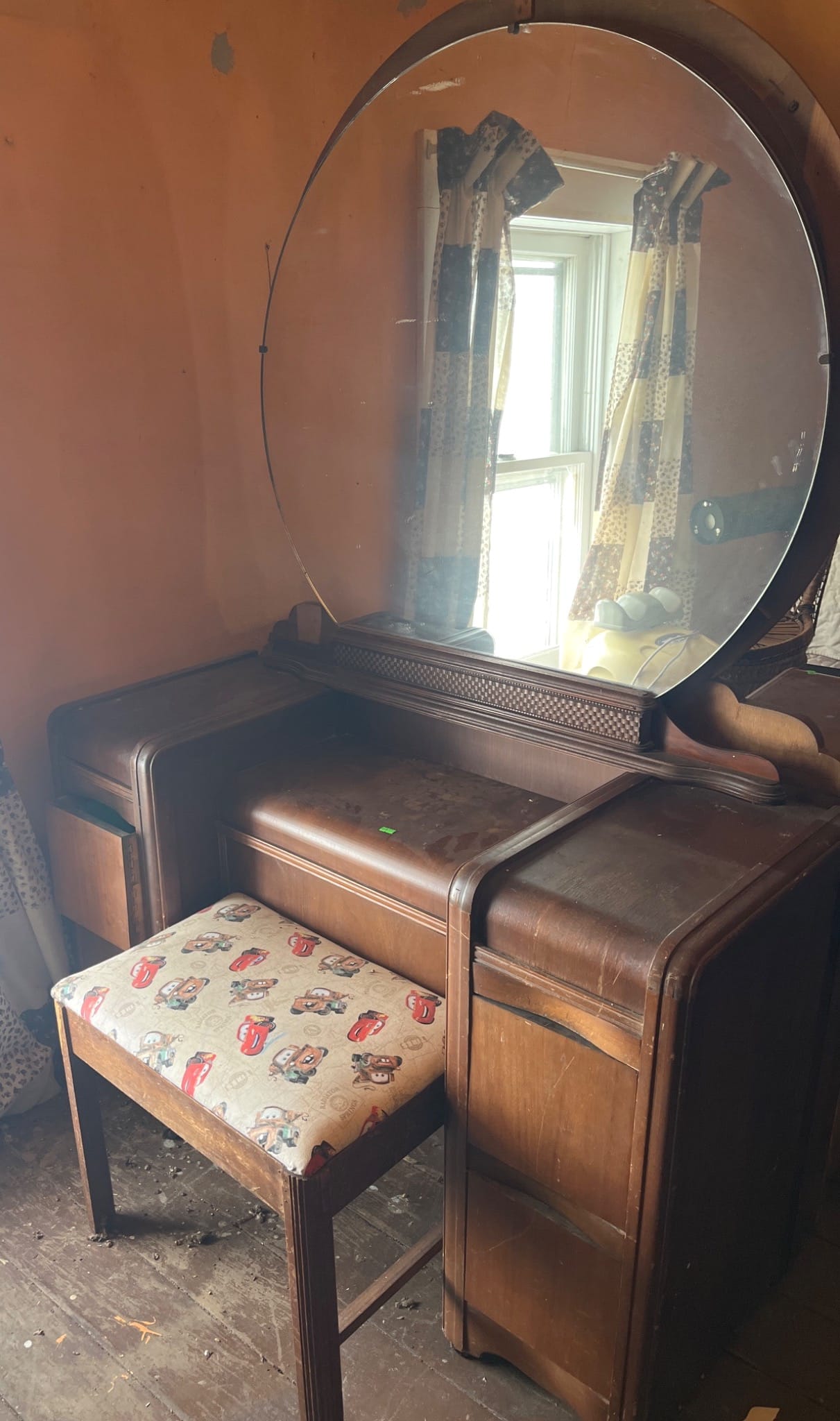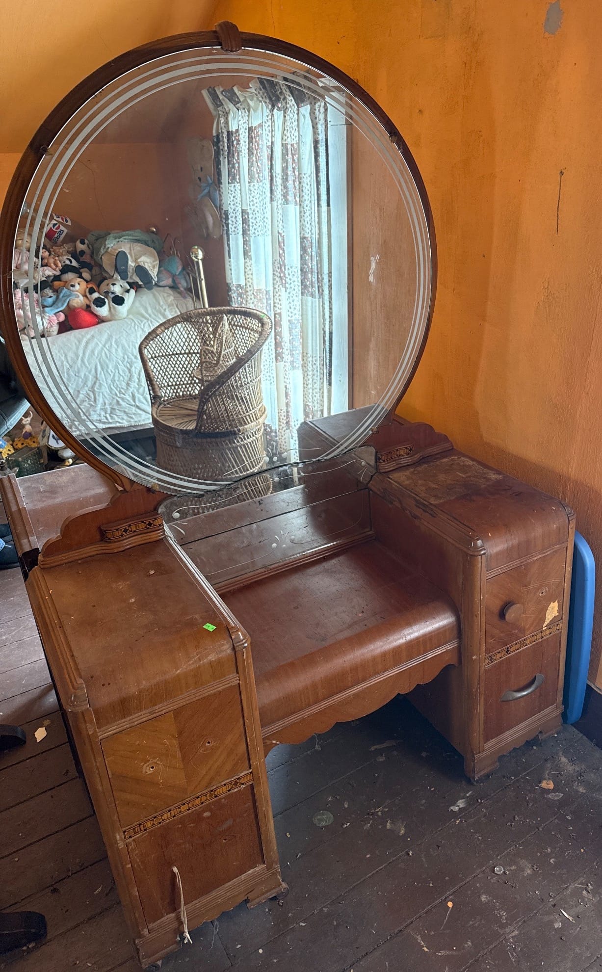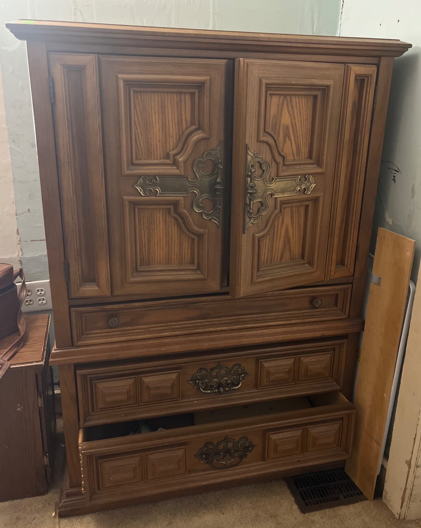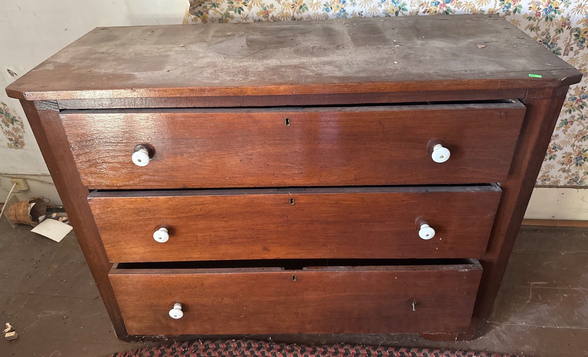 129 Drop-Leaf Desk with 3 Drawer Storage and Folding Support 23? x 22? x 26?, table extension needs repair