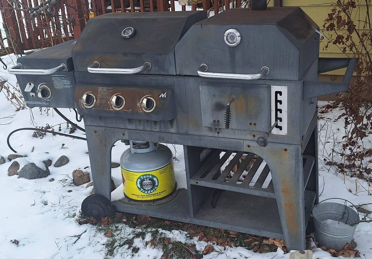 2000 Dual-Chamber Gas and Charcoal Grill with Side Burner