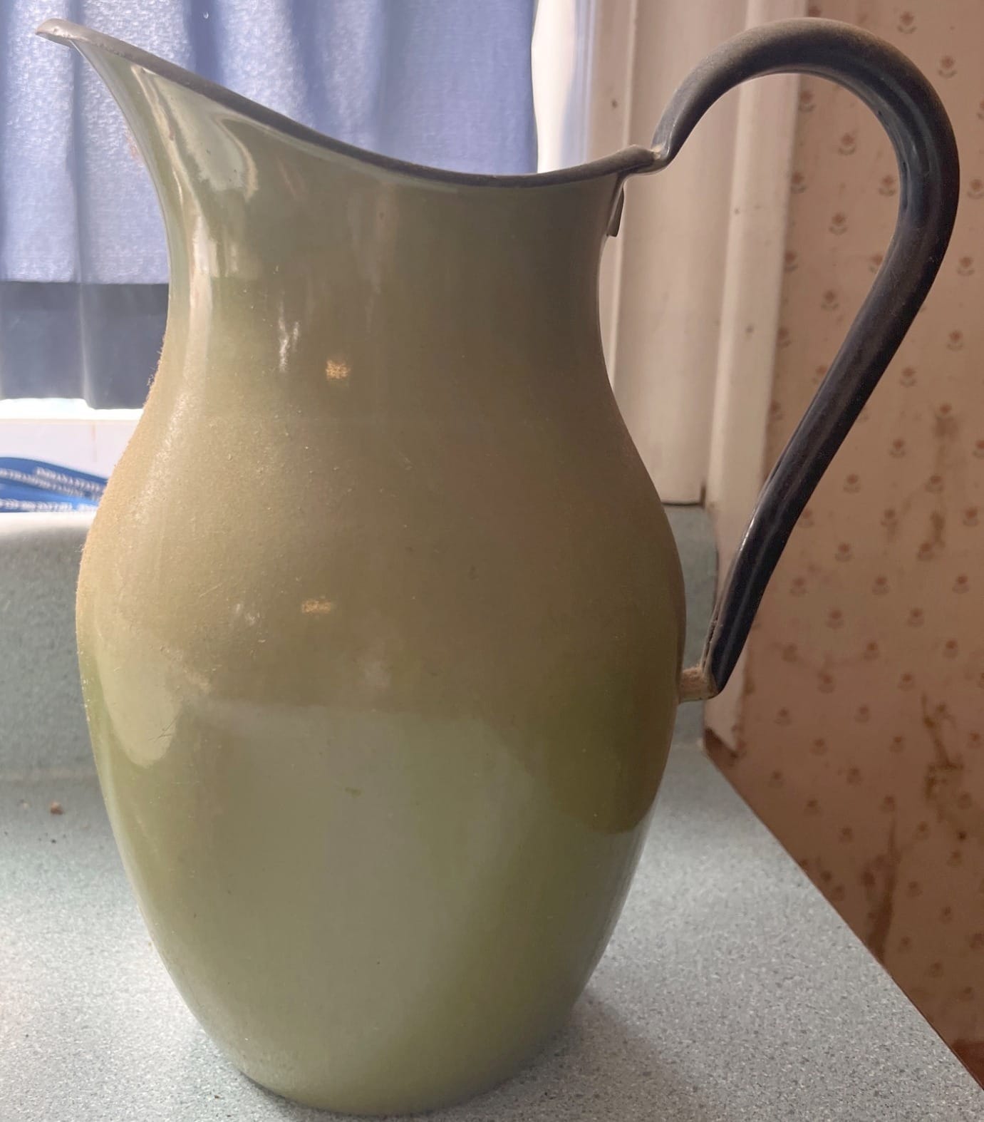 208 Ceramic Pitcher with Green Glaze and Black Handle 10?