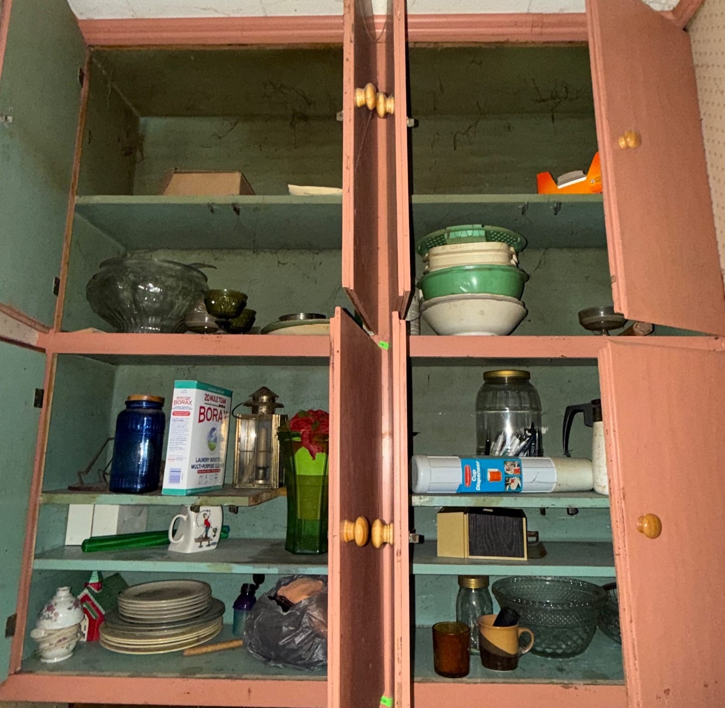 228 Wall-Mounted Kitchen Cabinets with Contents Inc. Dishware and Glassware