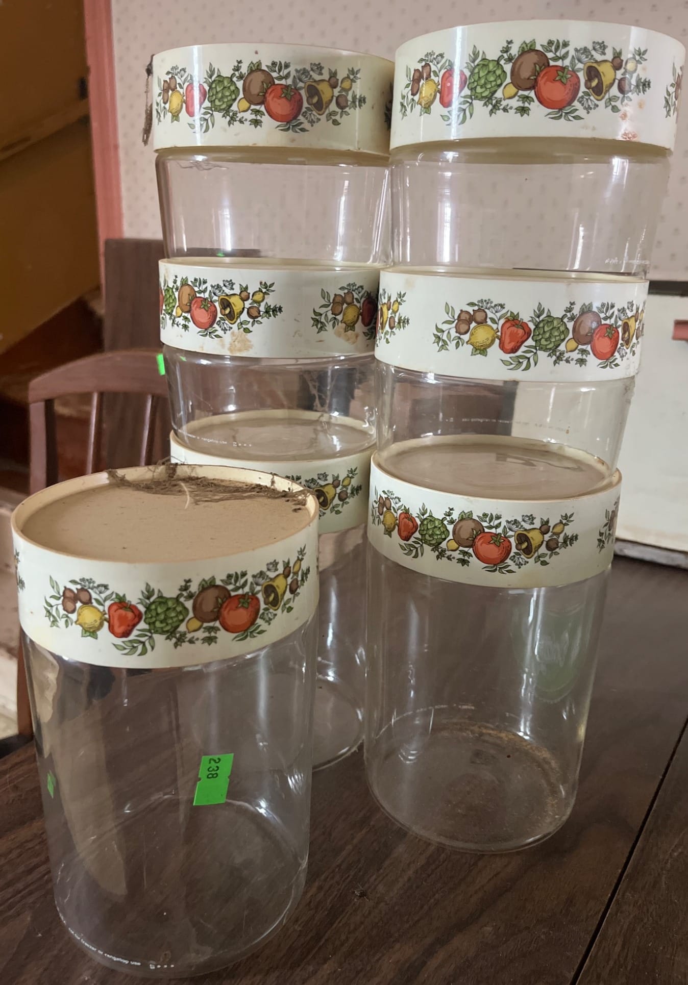 238 7 Pyrex Glass Canisters with ‘Spice of Life’ Design