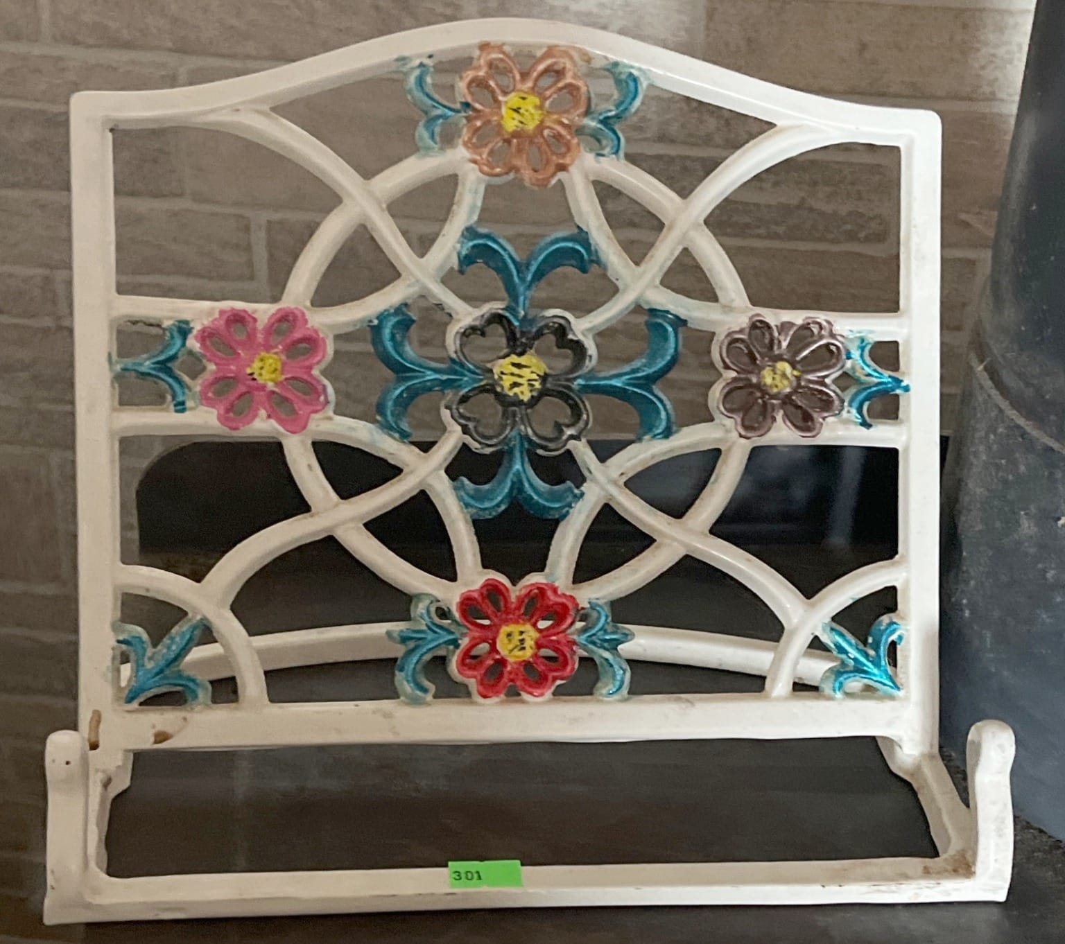 301 Painted Cast Iron Book or Tablet Holder with Floral Design