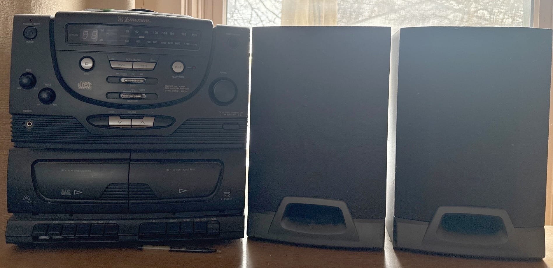 304 Emerson Model MS7638 Audio System with Speakers and 3-Disc CD Changer, Untested