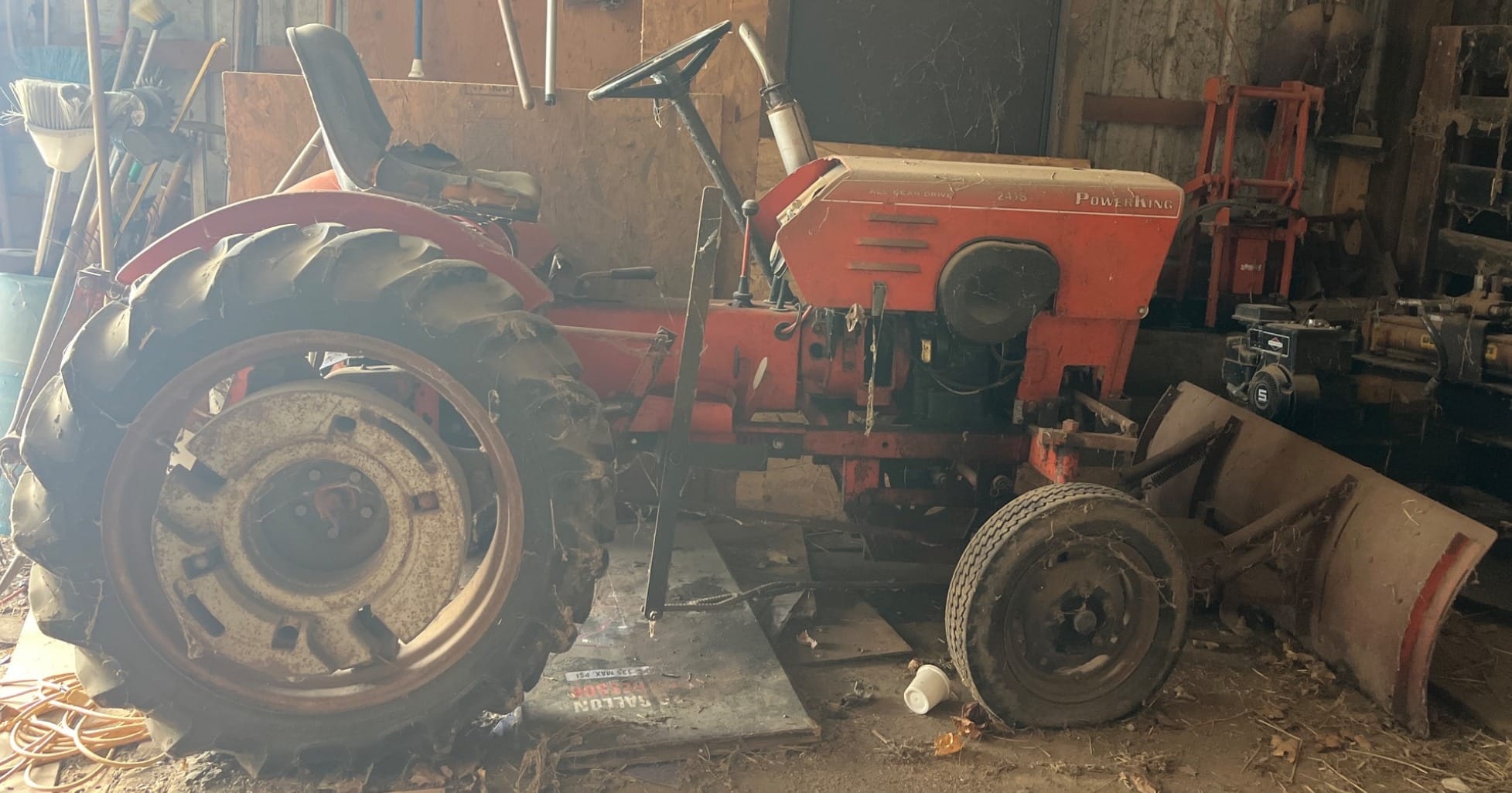 5 Power King Economy Tractor 2418 With All-Gear Drive, 18HP Dual Transmission, Runs and Drives, Was used last year - Comes with Belly Mower, Snow Blade, Snow Blower and Soft Cab