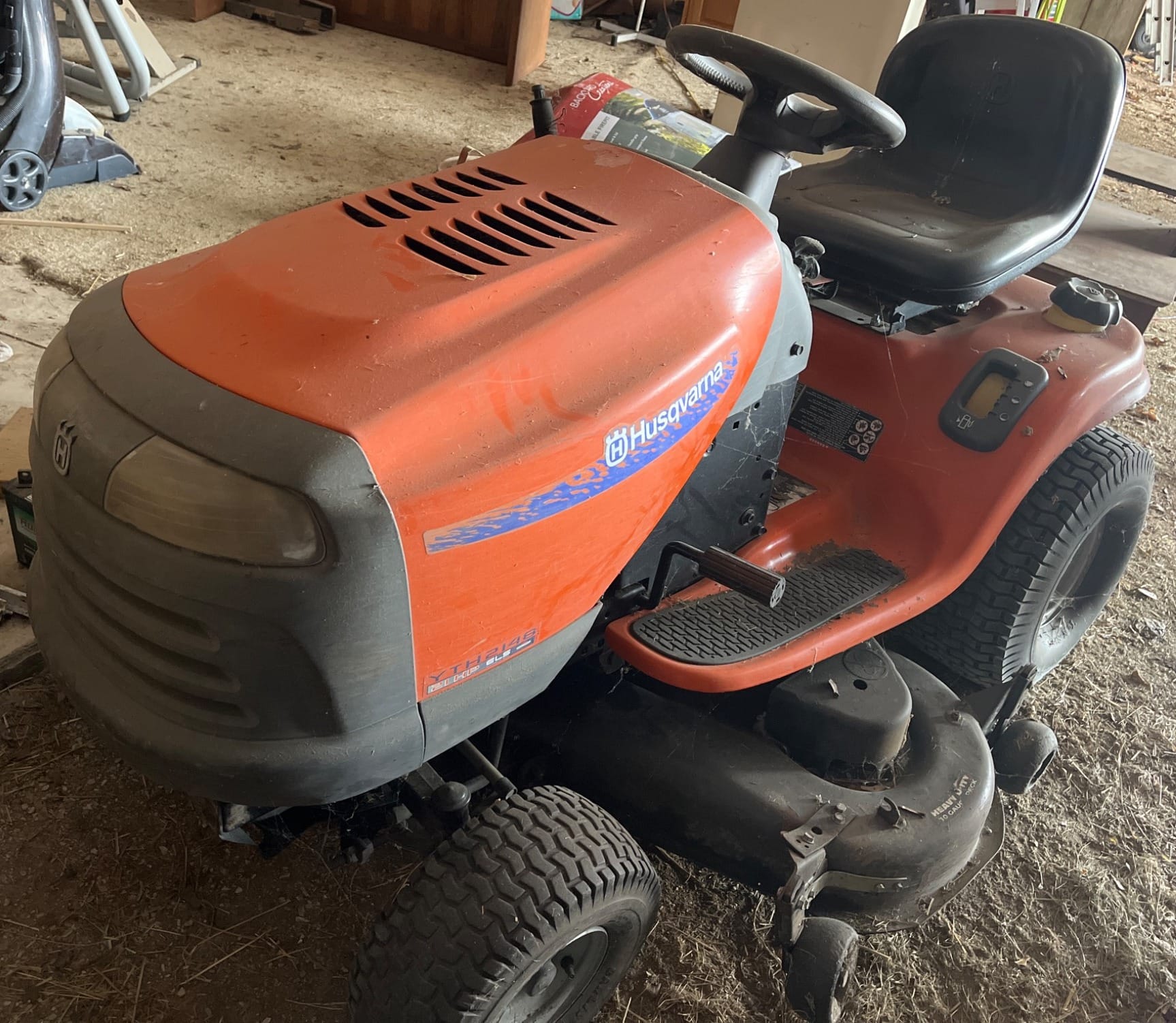 7 Husqvarna LD21148A Riding Lawn Mower with Flat Tire