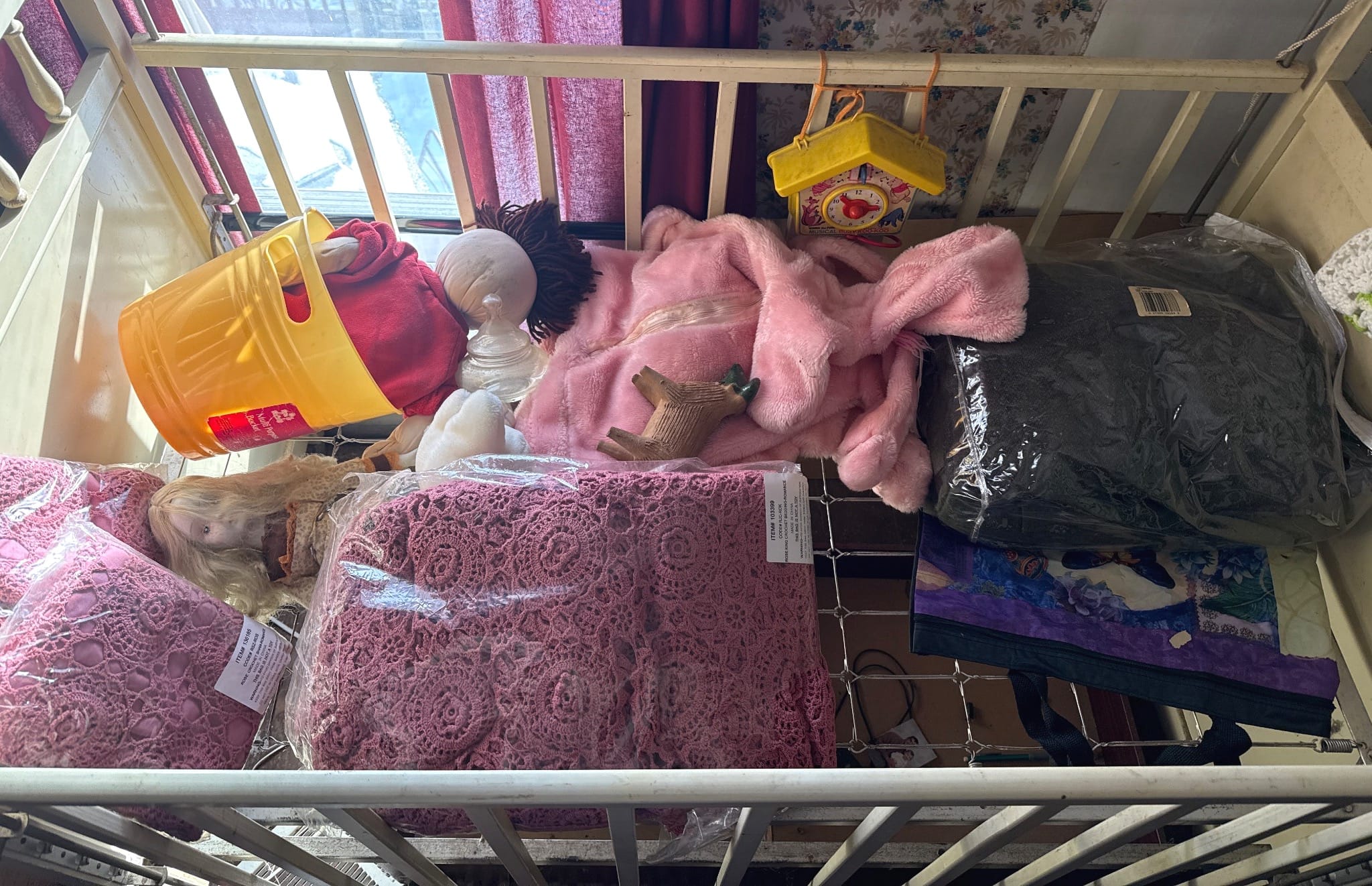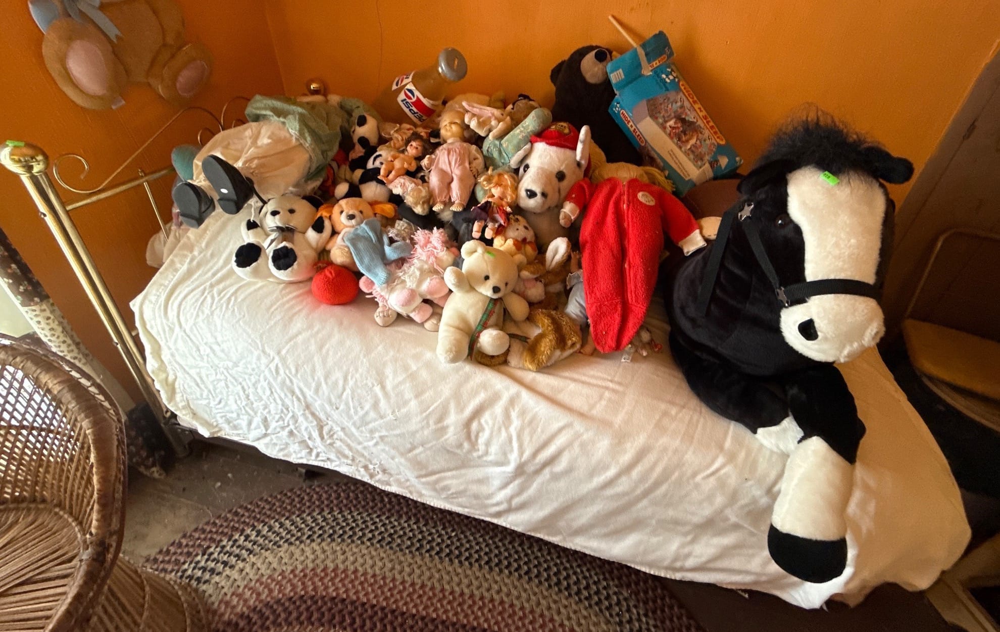 818 Metal Frame Bed with Mattress and Assorted Plush Toys and Dolls