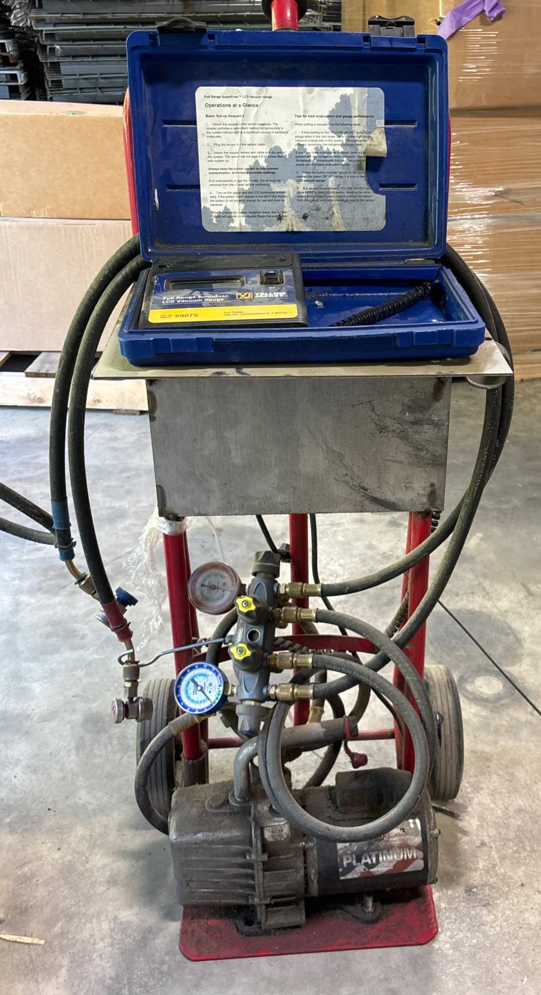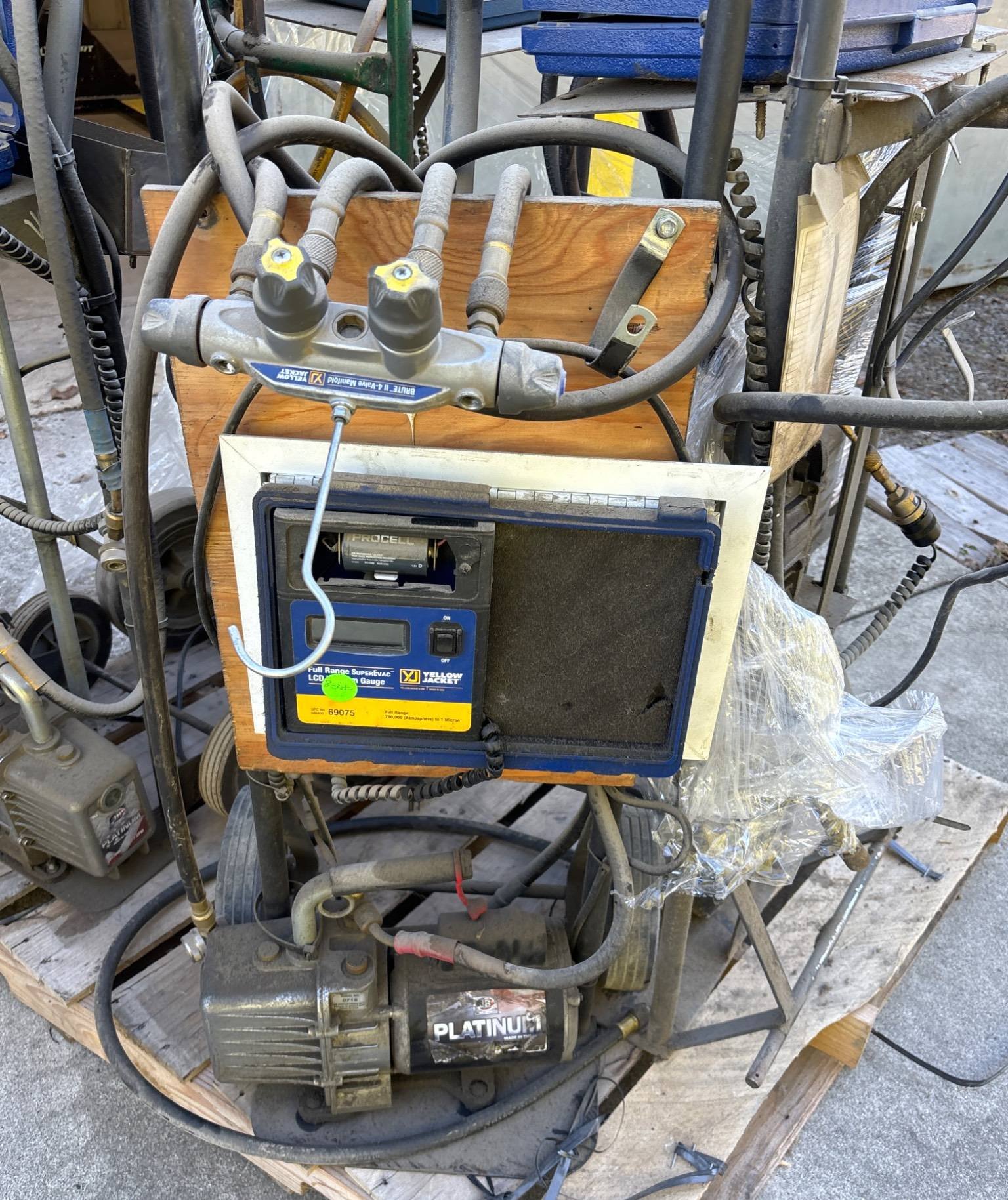 6491 Refrigerant Recovery Machine with Yellow Jacket Vacuum Gauge and Accessories - Unknown Condition - PICK UP ALTERNATE LOCATION GOSHEN INDIANA -173