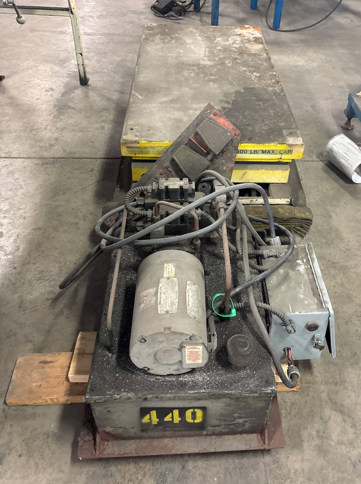 6507 Yellow Hydraulic Lift Table with 460V/3PH Motor and Hoses - PICK UP AT ALTERNATE LOCATION IN NAPPANEE INDIANA-148A