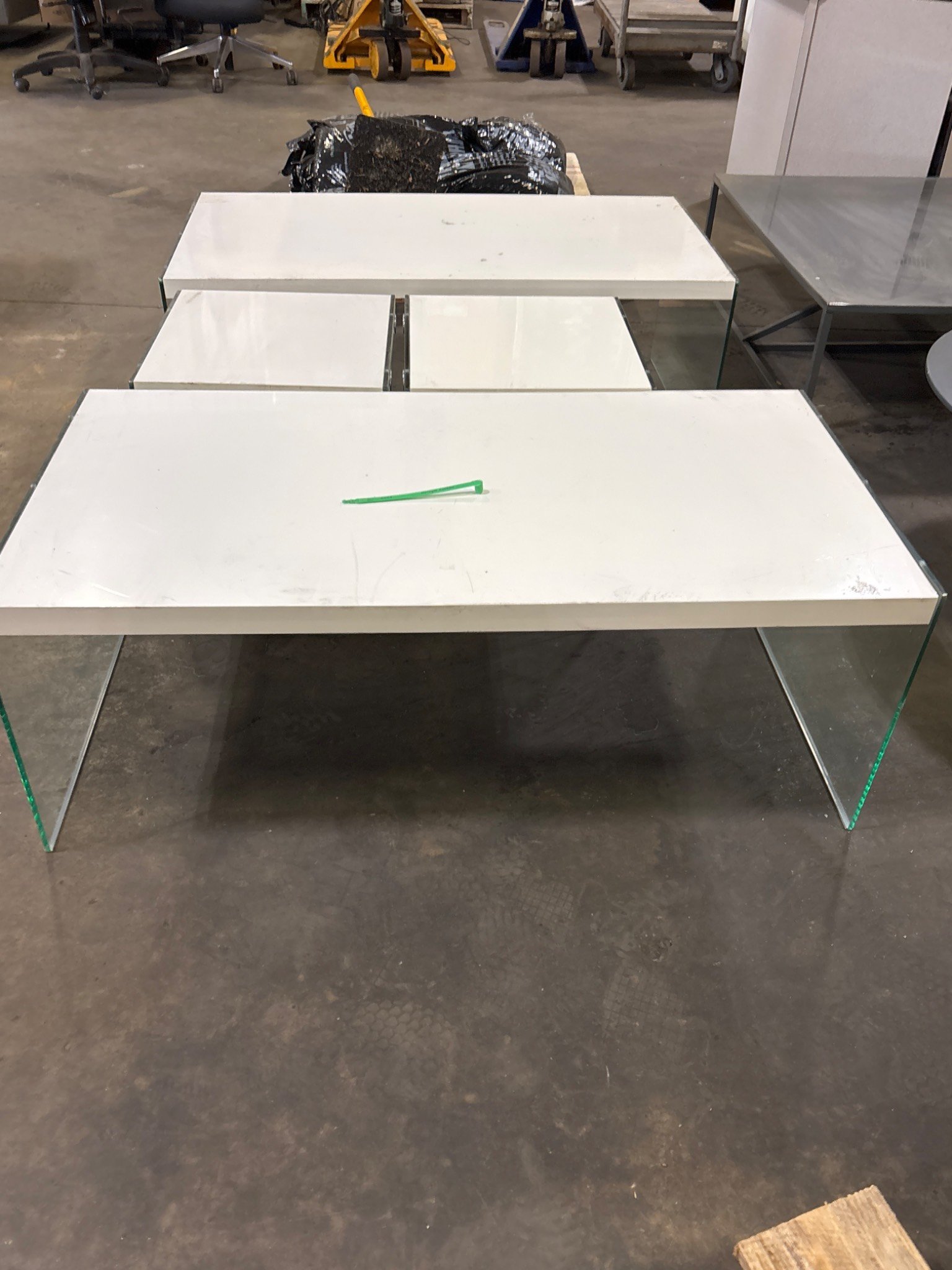 6904 4 White-Topped Coffee and Side Tables with Glass Panel Legs - PICK UP ALTERNATE LOCATION ELKHART INDIANA -JW