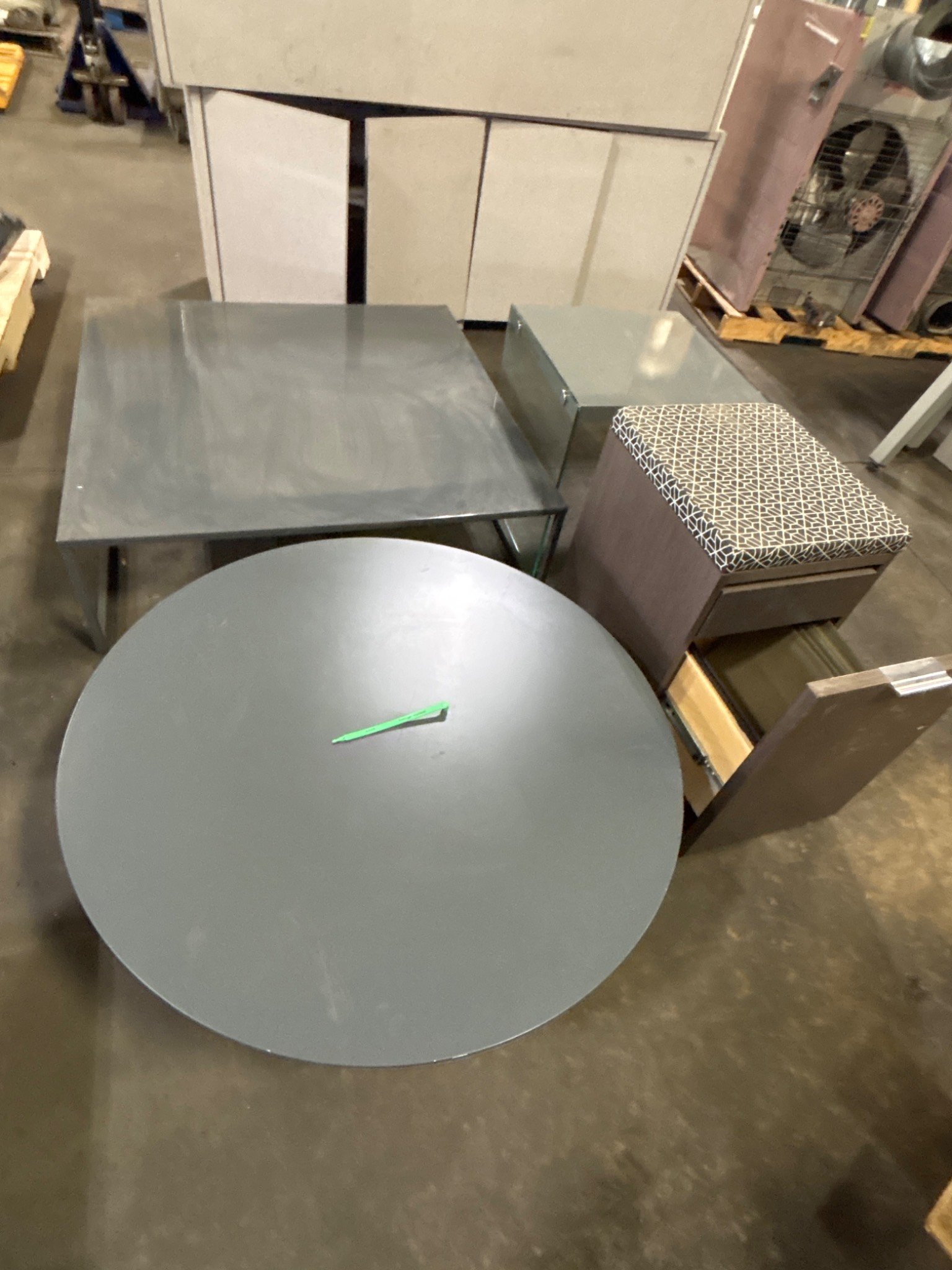 6905 Tables and Upholstered Storage Cabinet with Drawers - PICK UP ALTERNATE LOCATION ELKHART INDIANA -JW