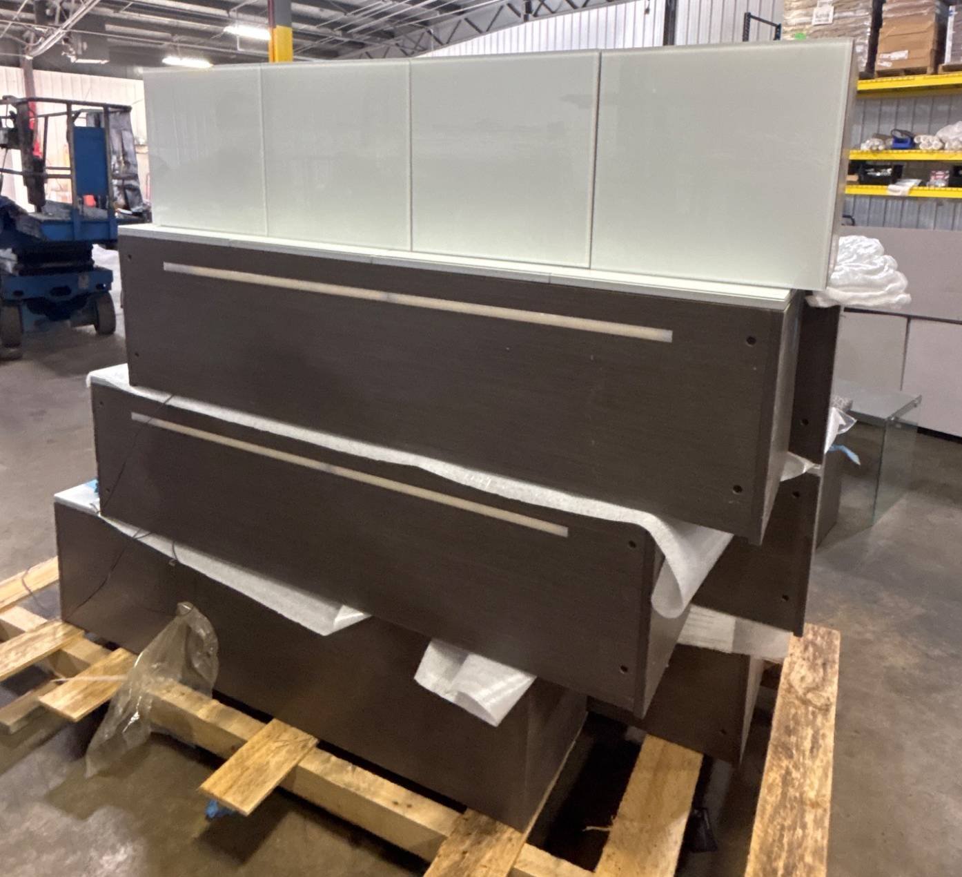 6907 (7) Modular Cabinet Units with Glass Front Panels, and Lights 16”x 60” - PICK UP ALTERNATE LOCATION ELKHART INDIANA -JW